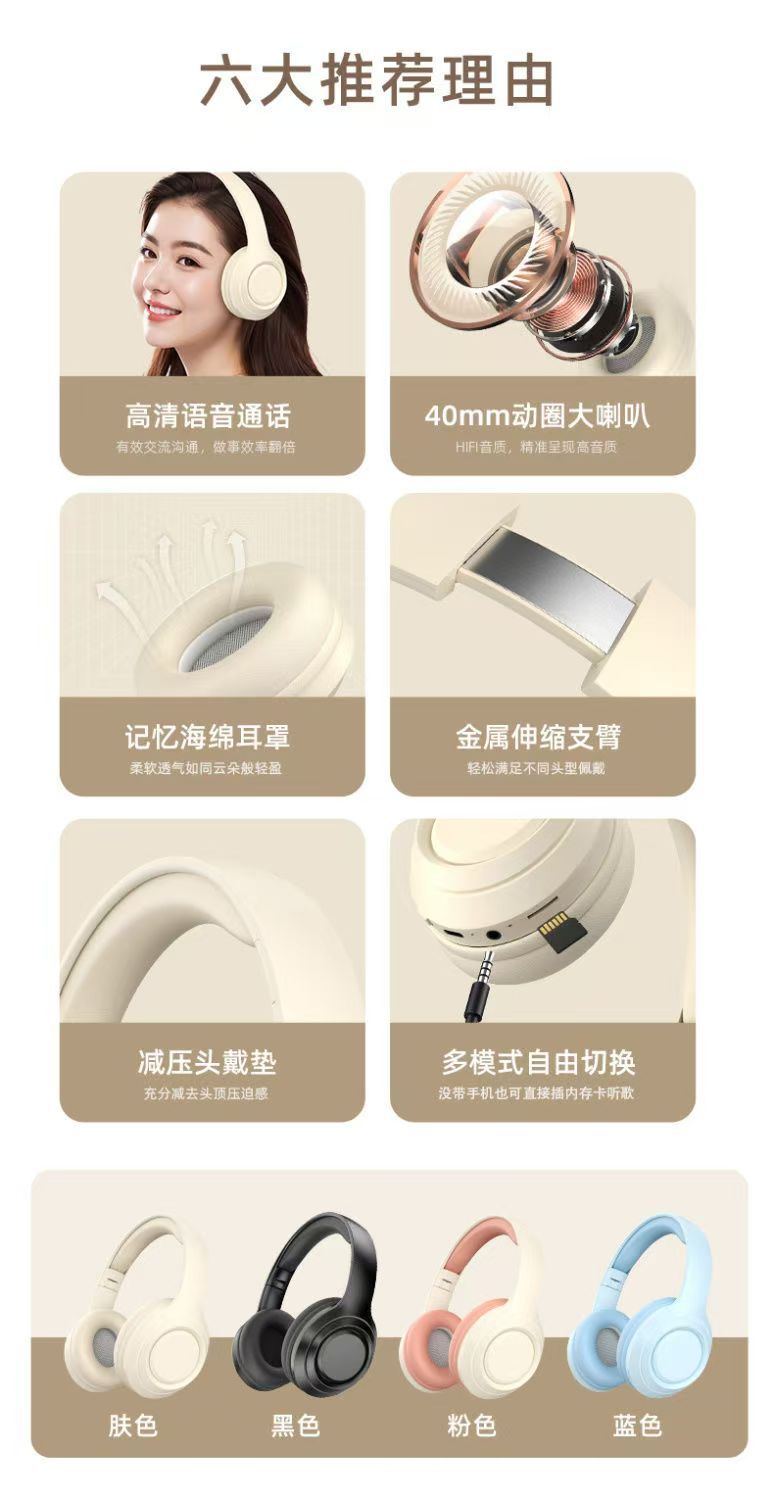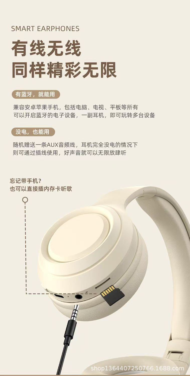 02耳机头戴式无线蓝牙主播跨境爆款云柔被动降噪插卡运动游戏电竞