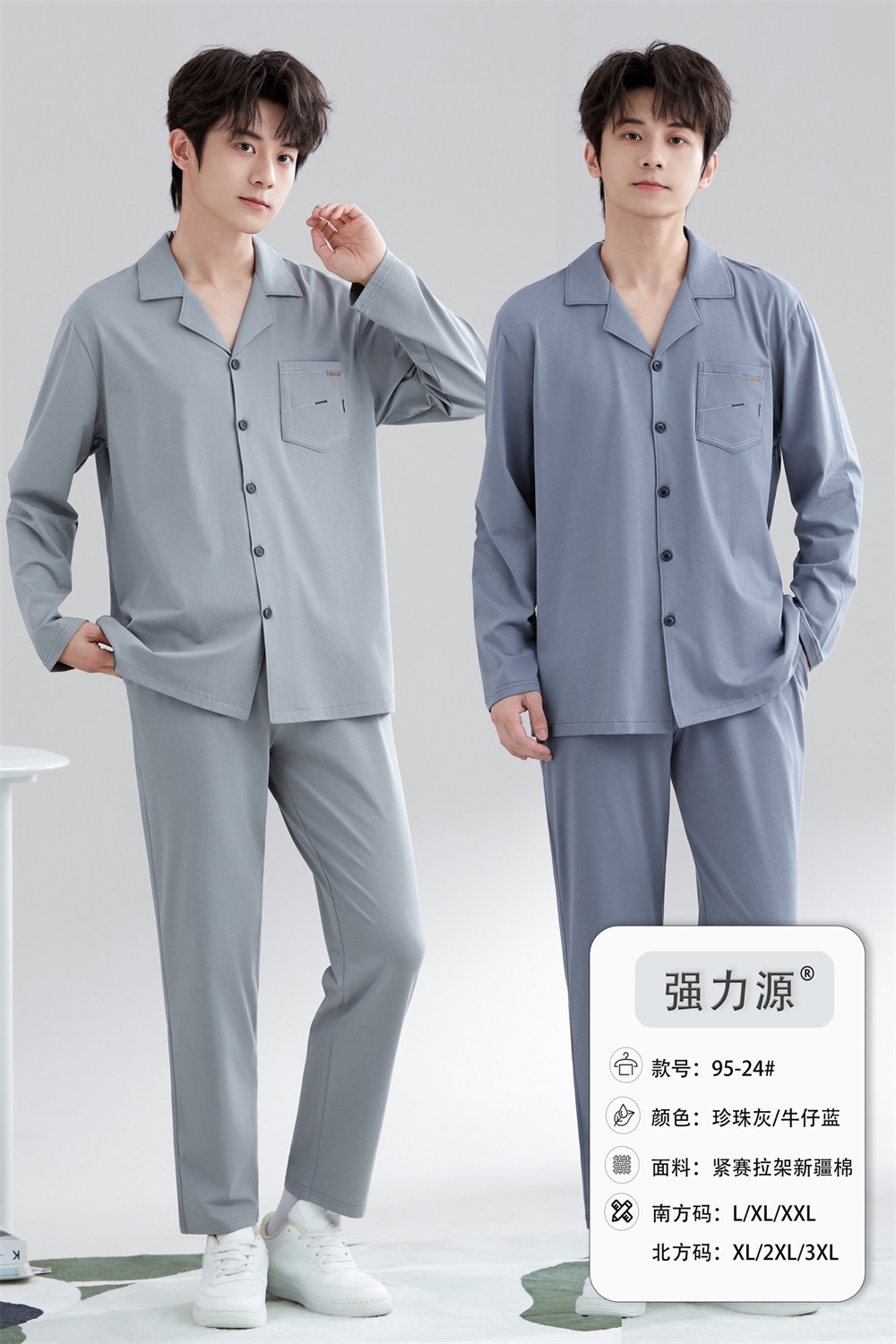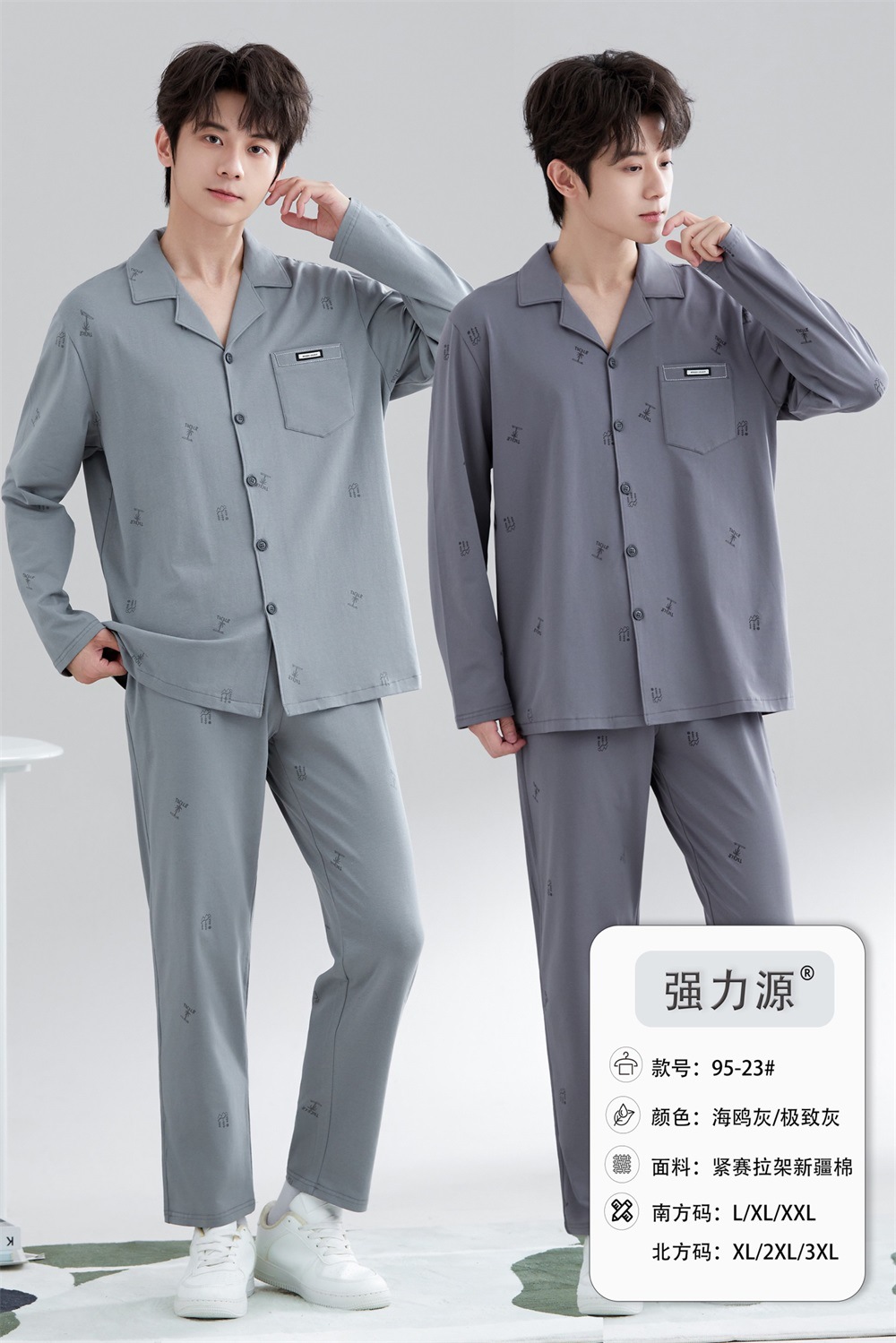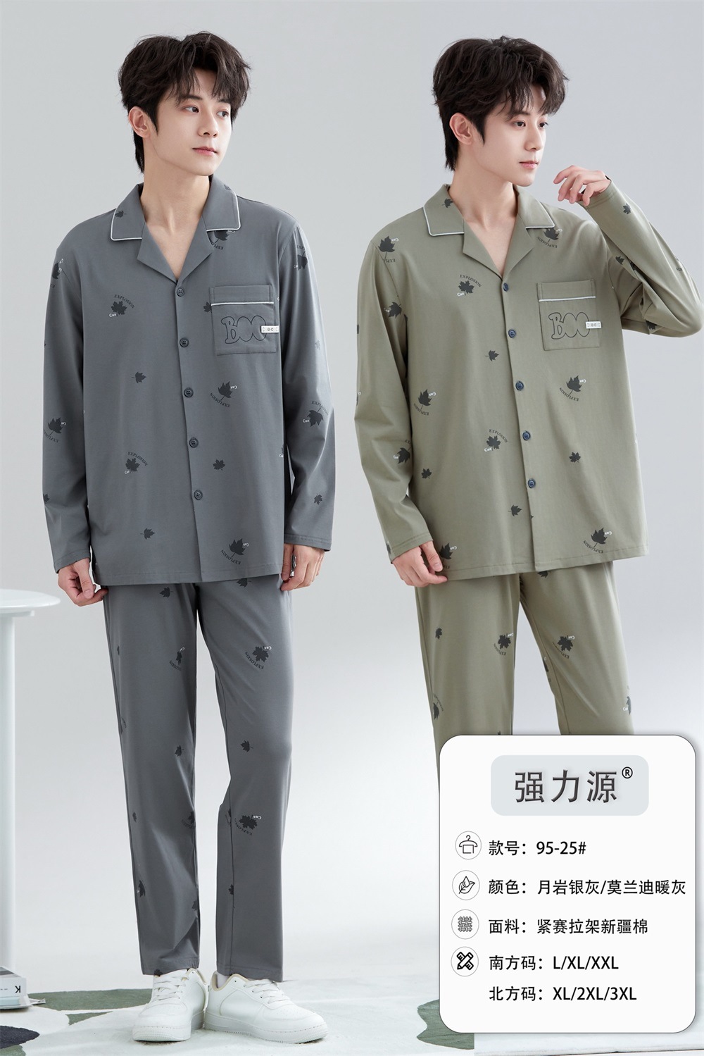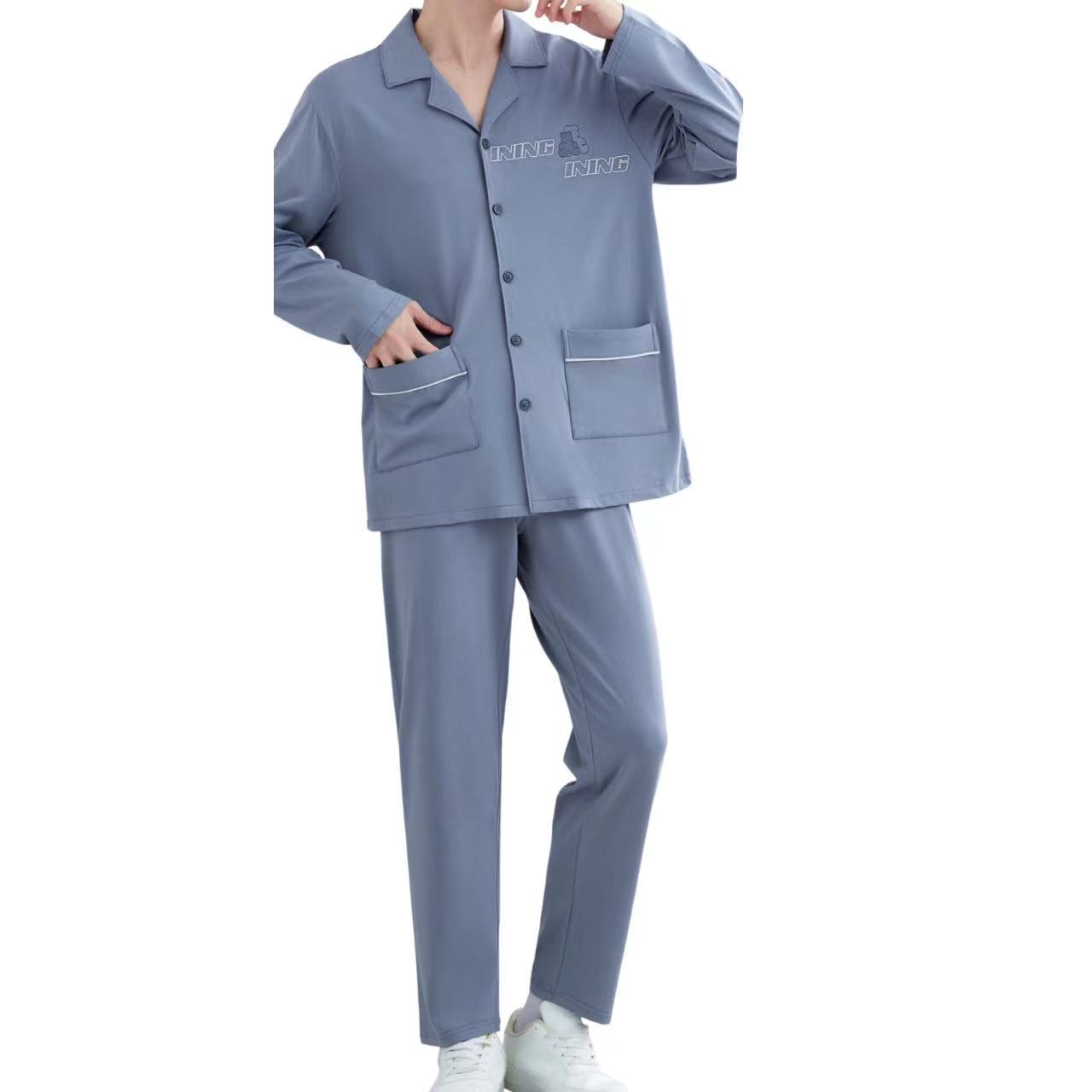 2025 새로운 강력한 소스 라펠 신장 면화 긴팔 바지 정장은 편안하고 통기성이 있으며 남성용 홈웨어 외부에 착용할 수 있습니다.스토어 가기