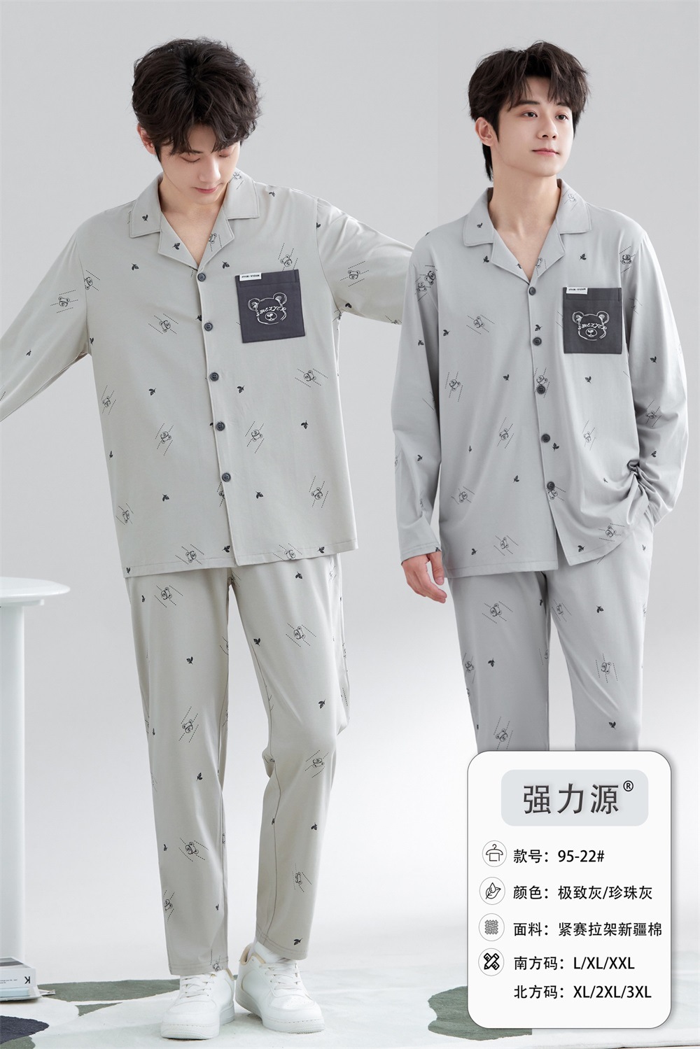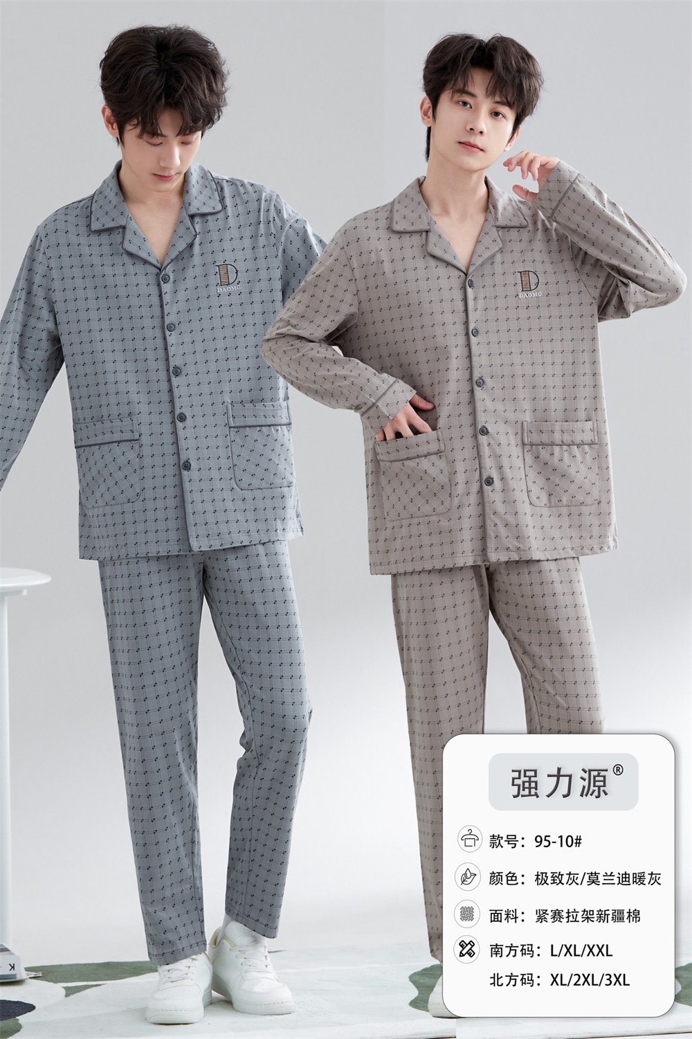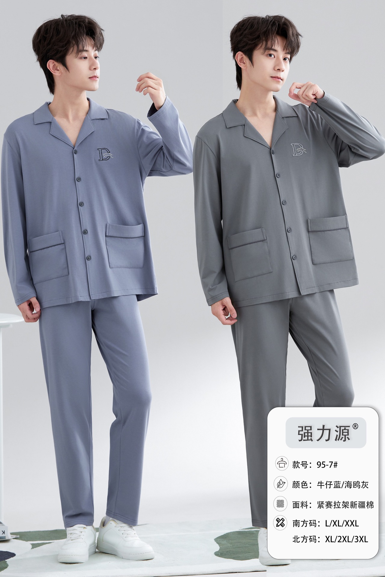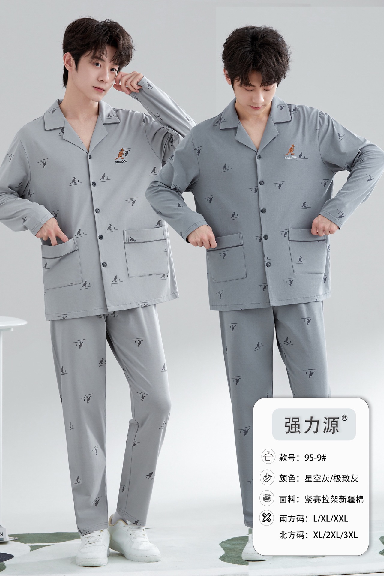 2025 새로운 강력한 소스 라펠 신장 면화 긴팔 바지 정장은 편안하고 통기성이 있으며 남성용 홈웨어 외부에 착용할 수 있습니다.스토어 가기