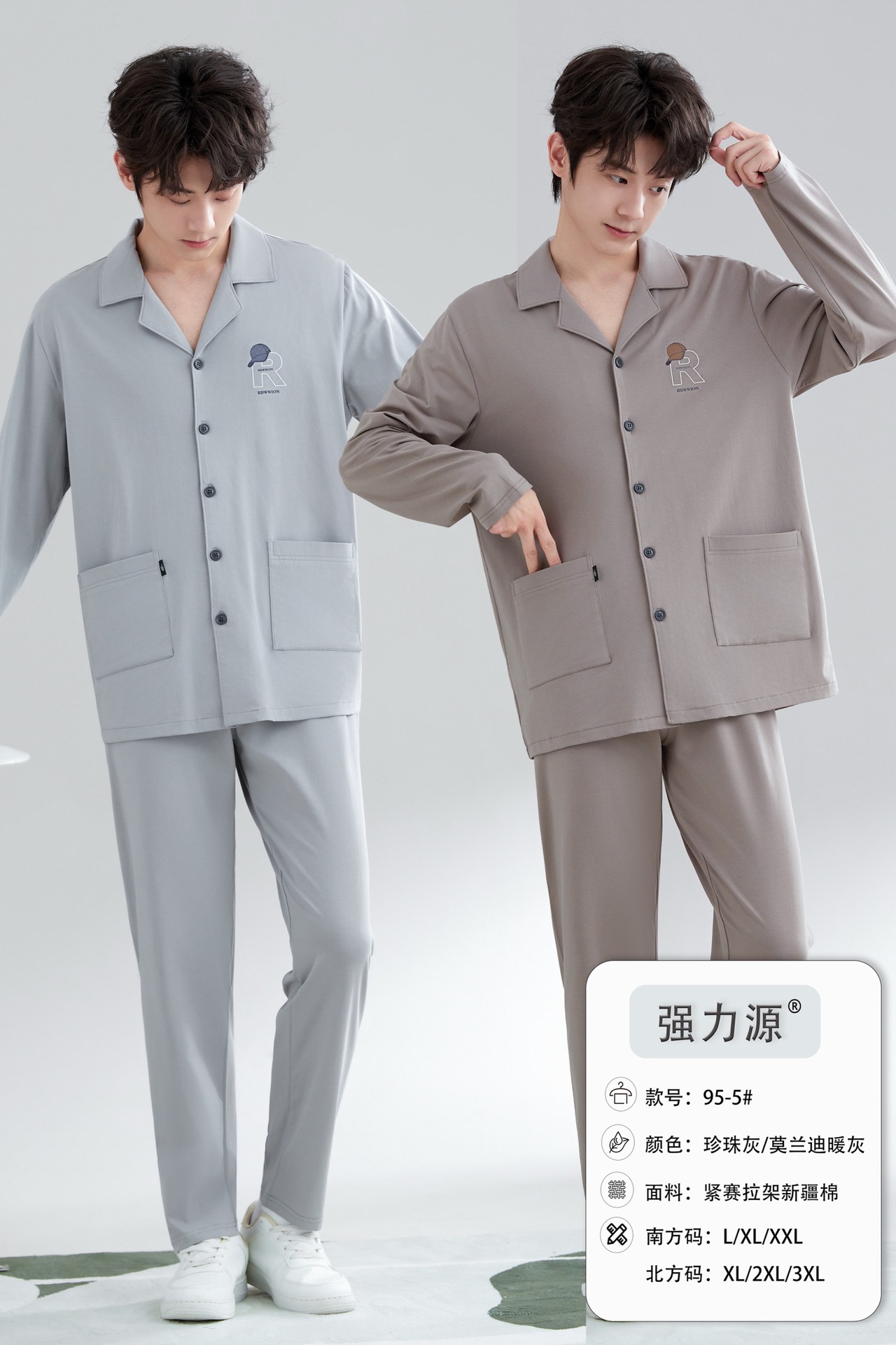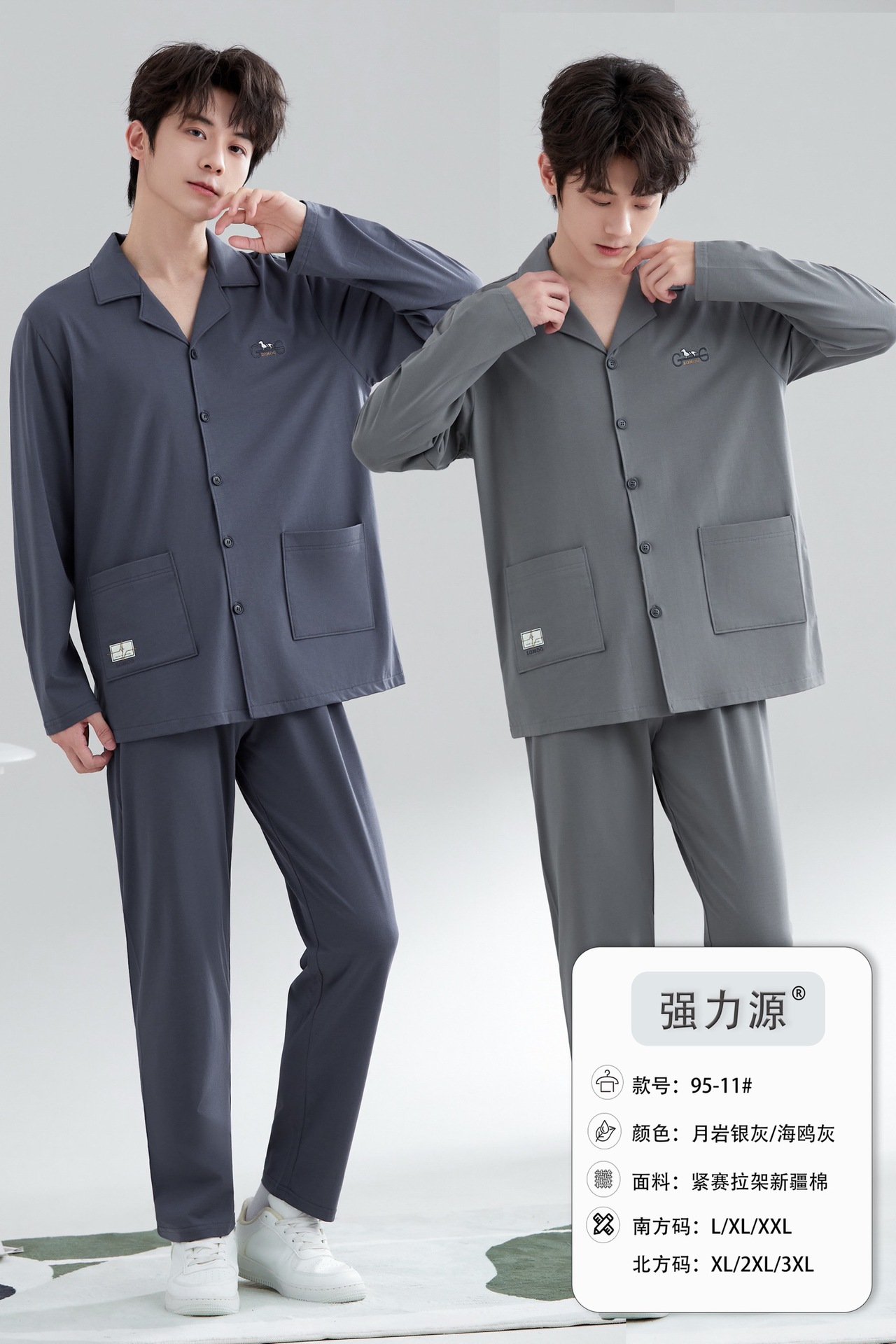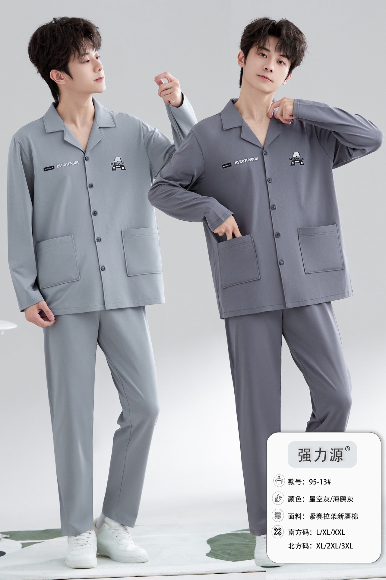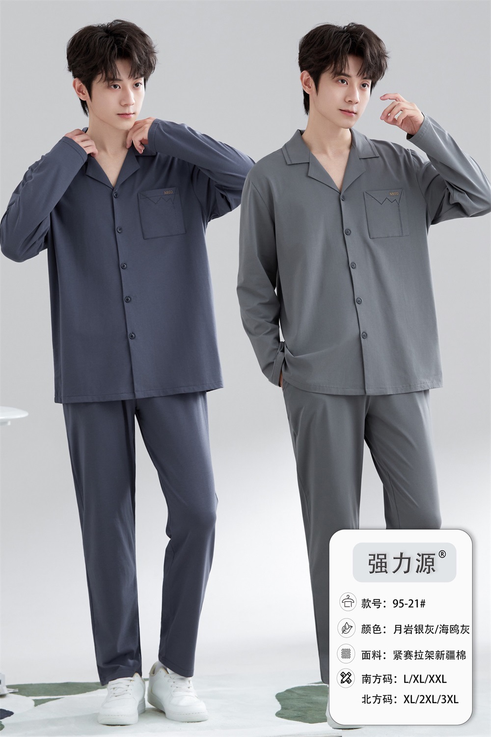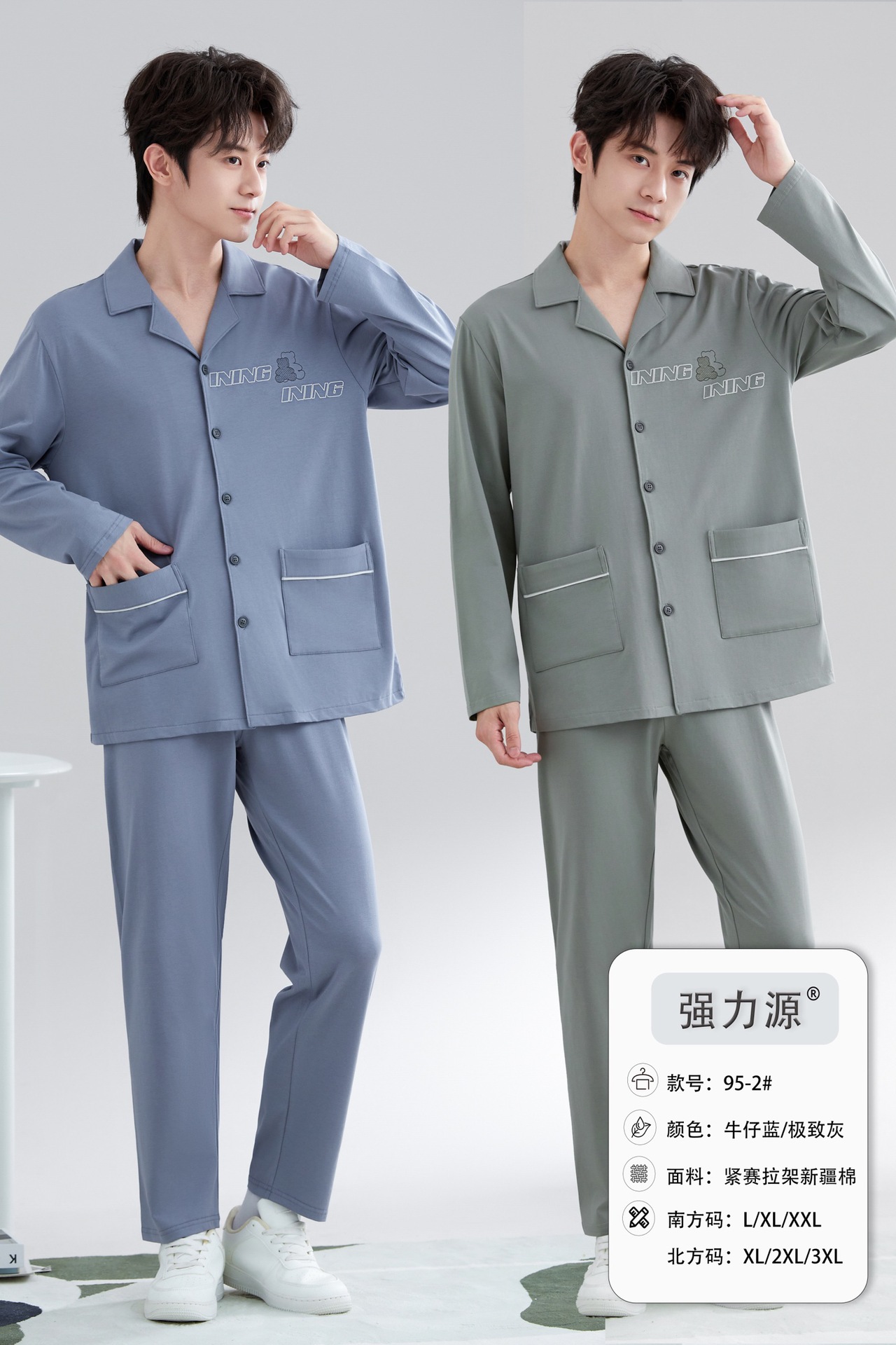 2025 새로운 강력한 소스 라펠 신장 면화 긴팔 바지 정장은 편안하고 통기성이 있으며 남성용 홈웨어 외부에 착용할 수 있습니다.스토어 가기