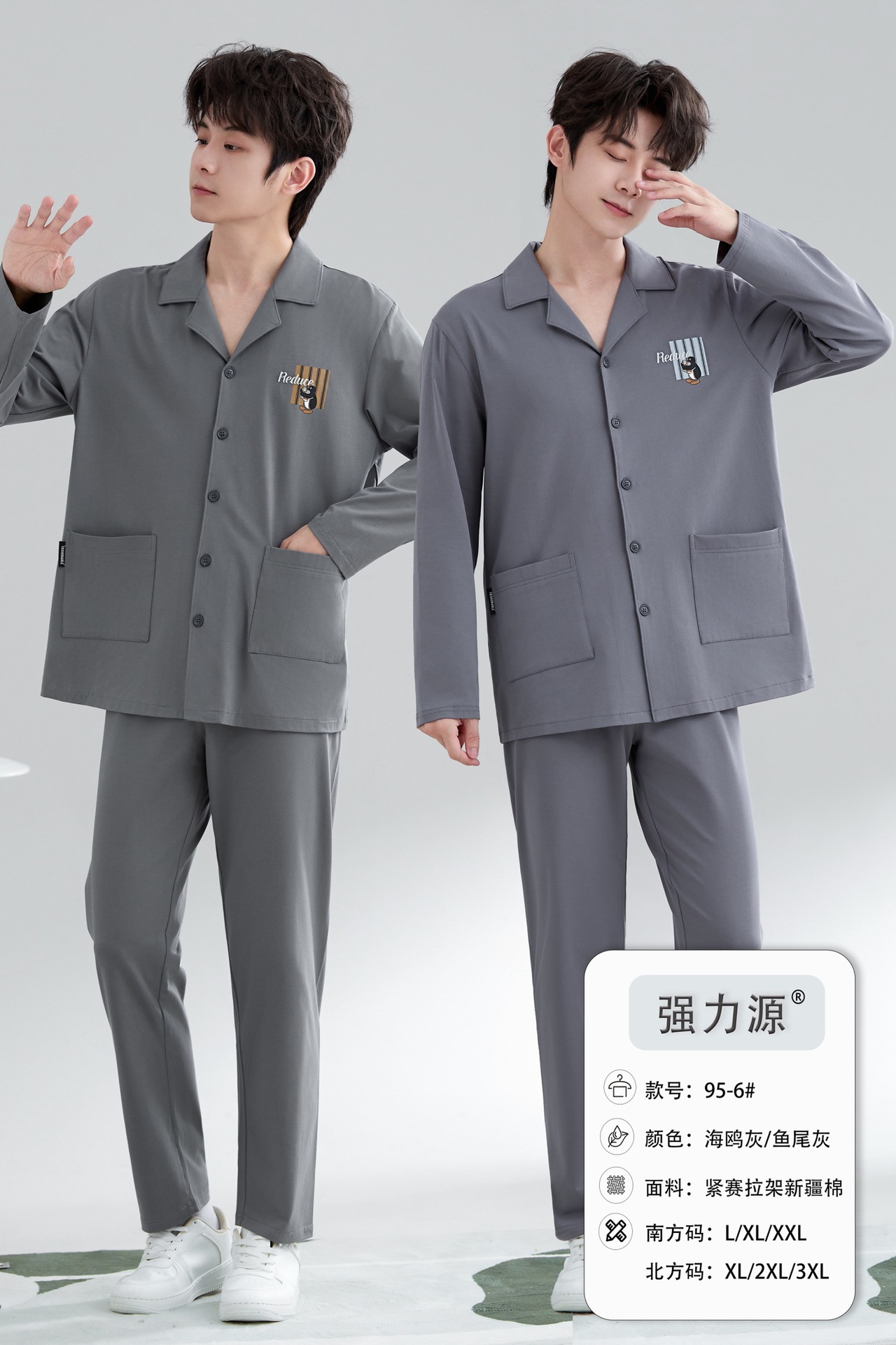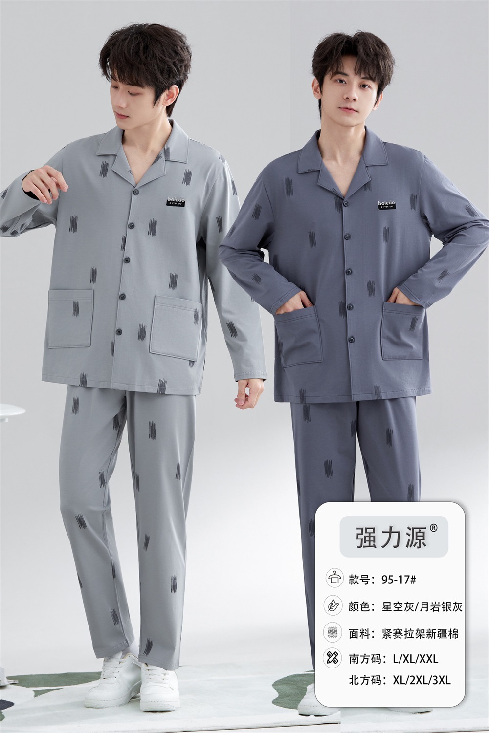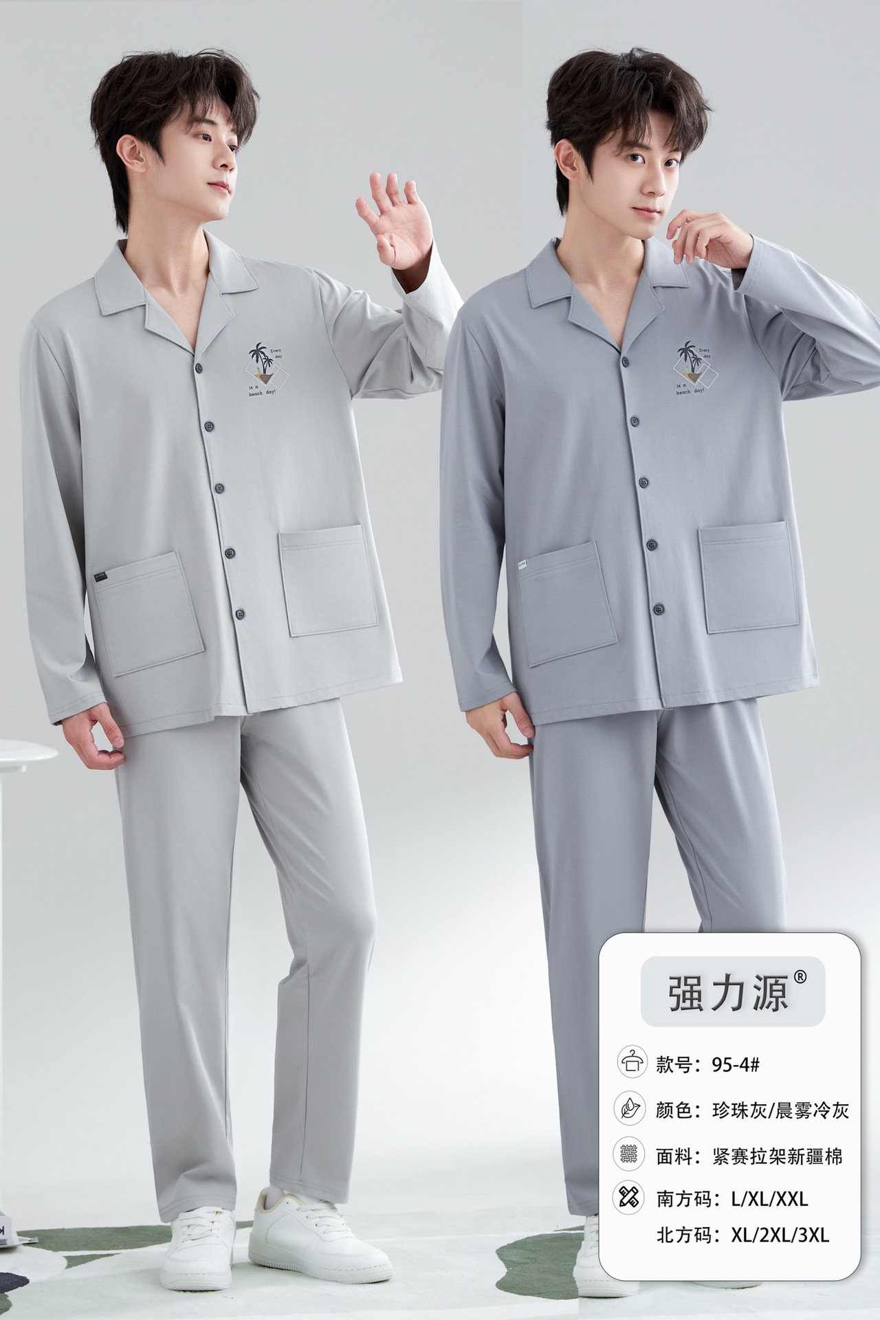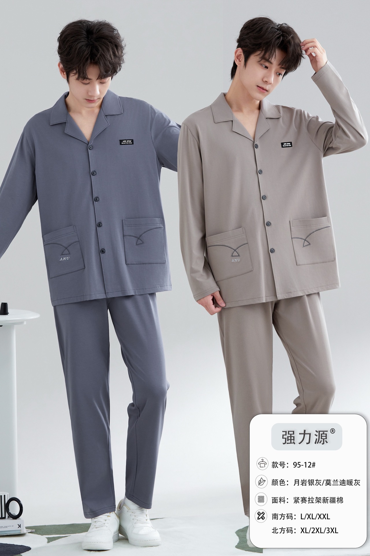 2025 새로운 강력한 소스 라펠 신장 면화 긴팔 바지 정장은 편안하고 통기성이 있으며 남성용 홈웨어 외부에 착용할 수 있습니다.스토어 가기