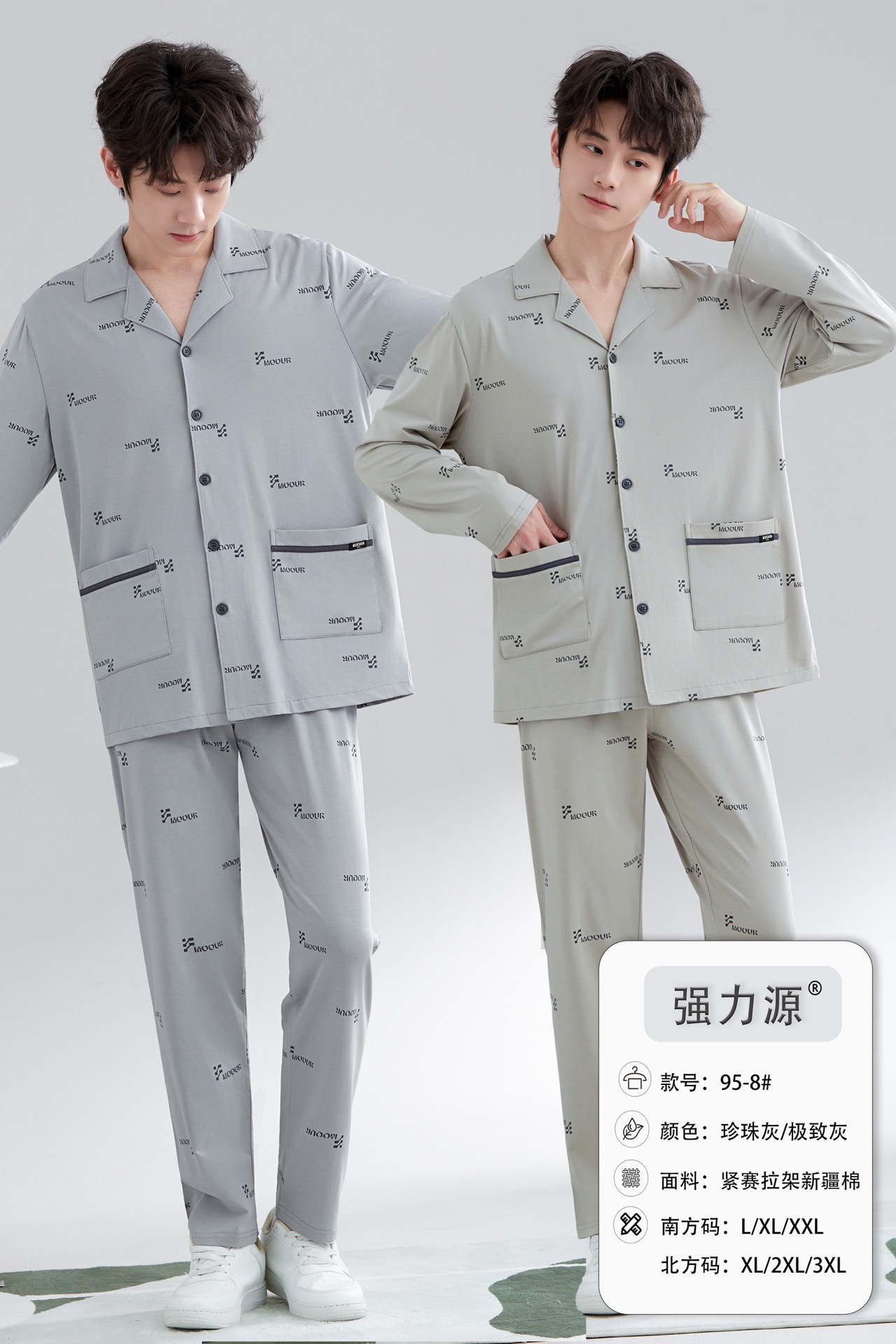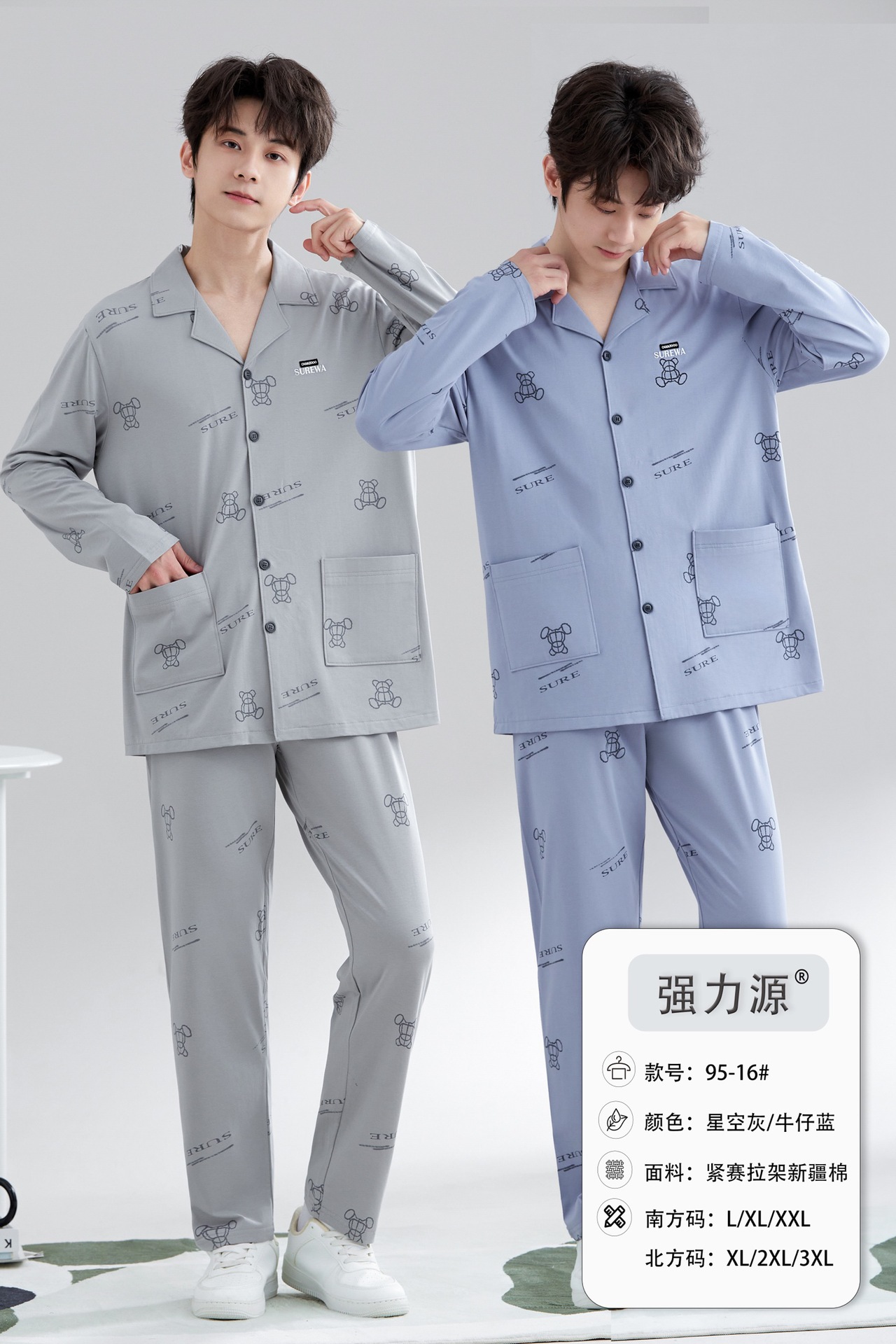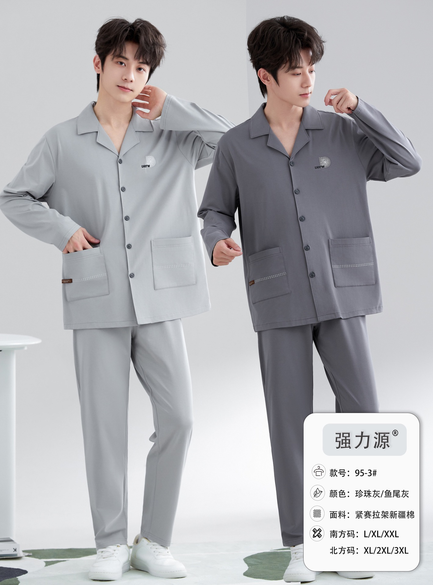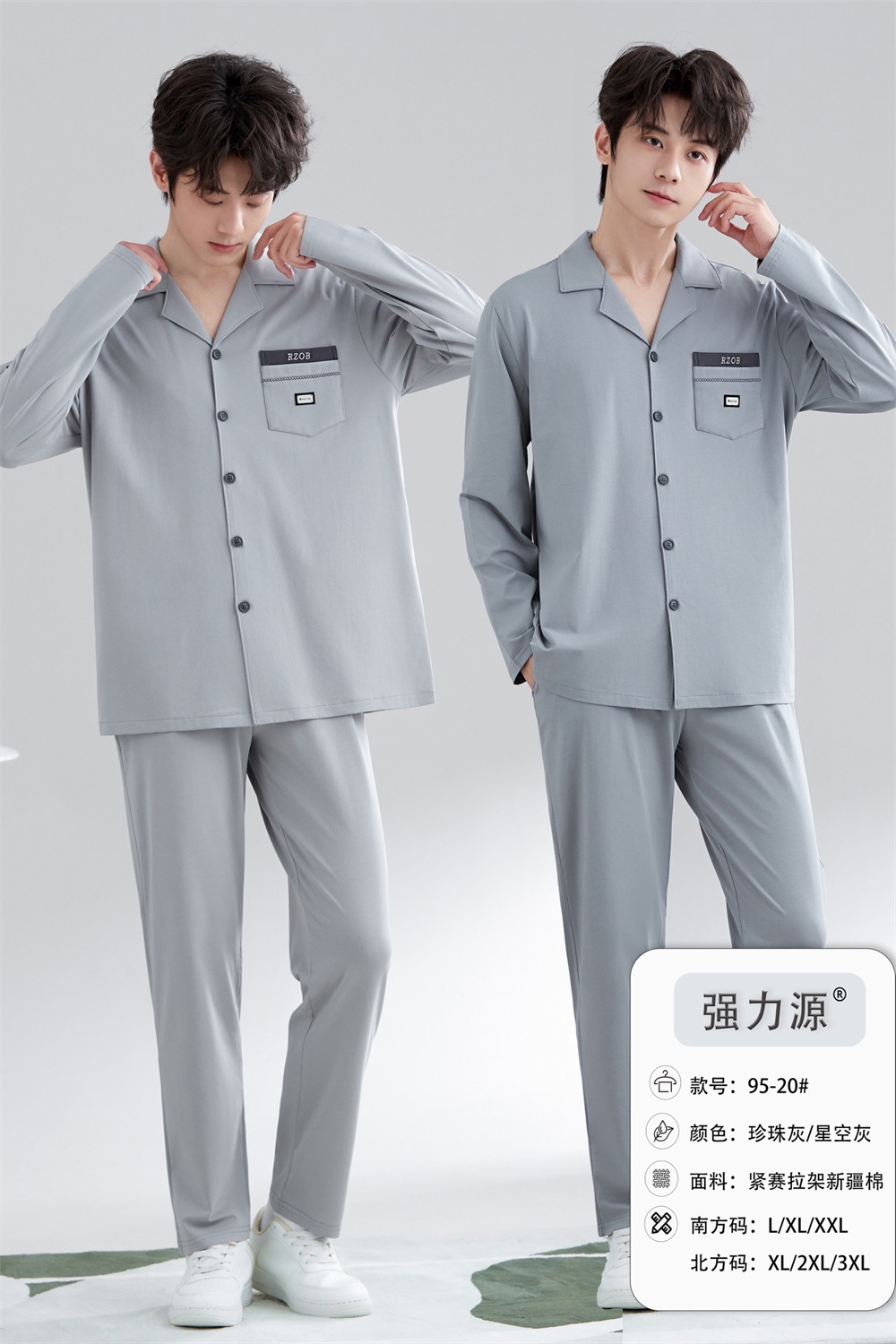 2025 새로운 강력한 소스 라펠 신장 면화 긴팔 바지 정장은 편안하고 통기성이 있으며 남성용 홈웨어 외부에 착용할 수 있습니다.스토어 가기