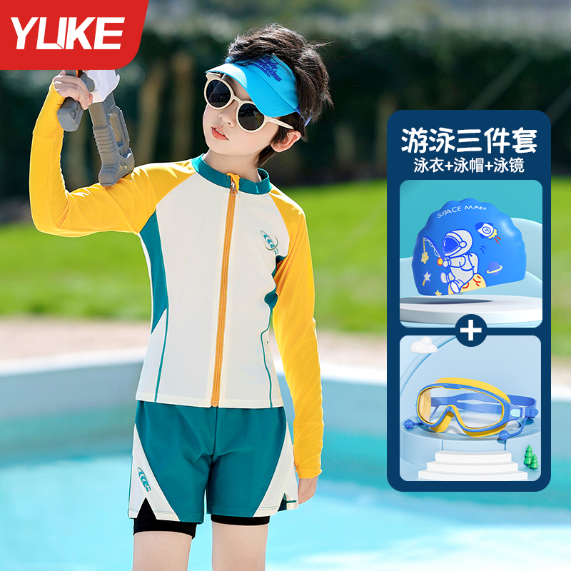 • 黄色长袖【泳衣+泳帽+泳镜】