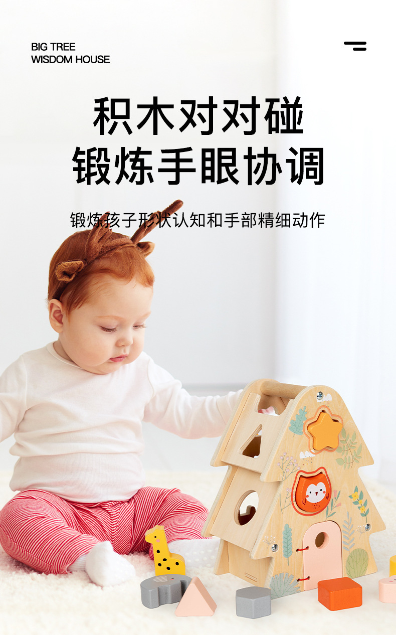 어린이 교육 조기 교육 큰 나무 지혜 집 동물 빌딩 블록 모양 일치하는 나무 장난감 아기 손과 눈 훈련스토어 가기