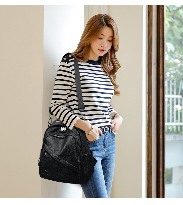 새로운 여성용 배낭 대용량 부드러운 가죽 여행 가방 패션 유행 통근 다목적 캐주얼 배낭스토어 가기
