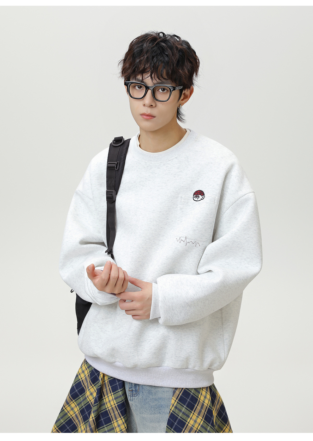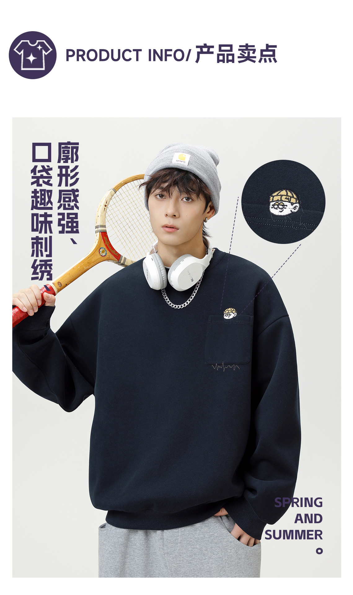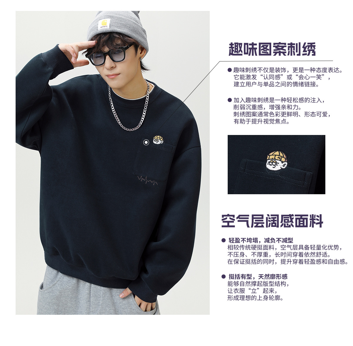 380g重磅复古质感刺绣圆领卫衣男秋季新款廓形宽松潮牌套头衫外套