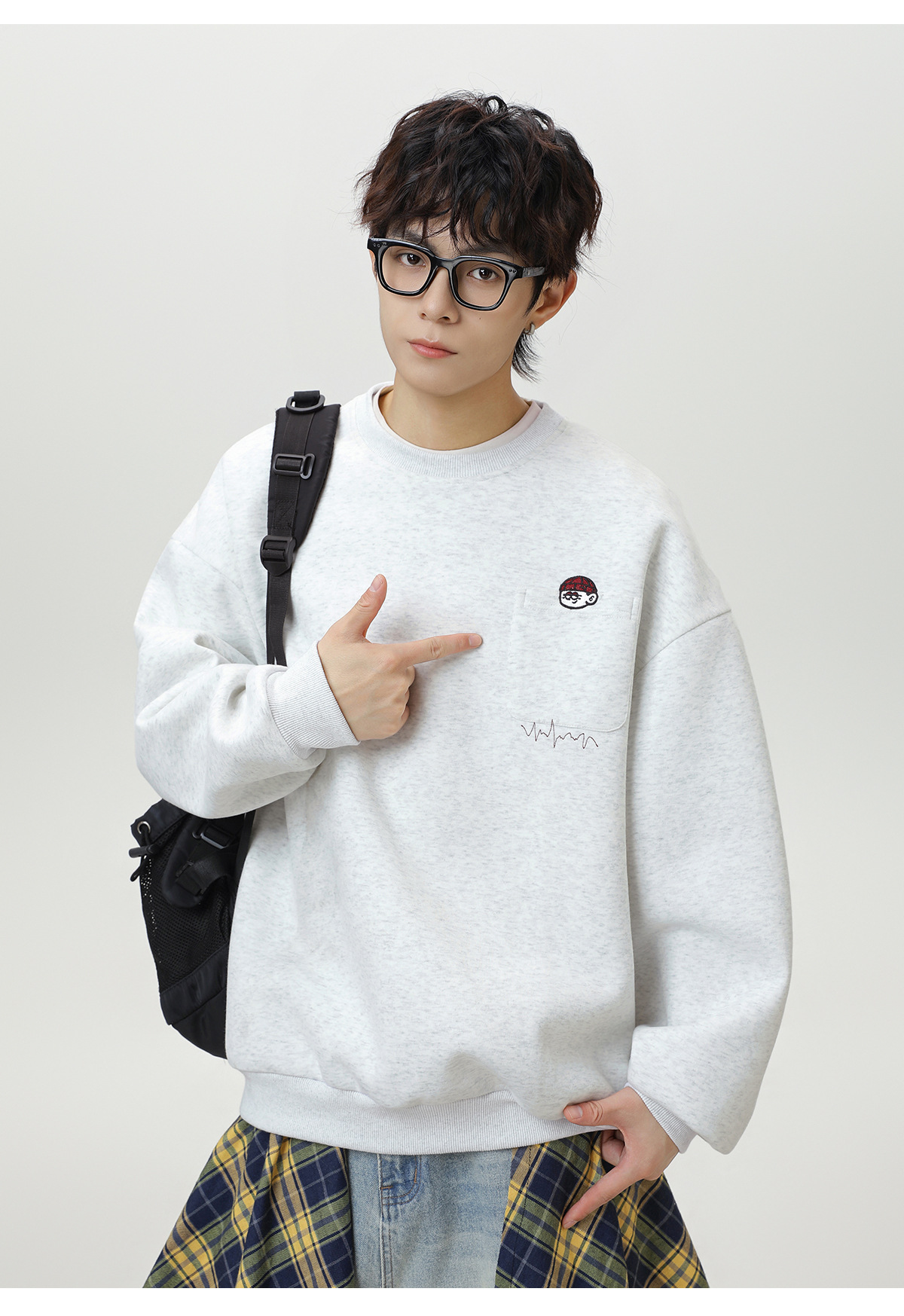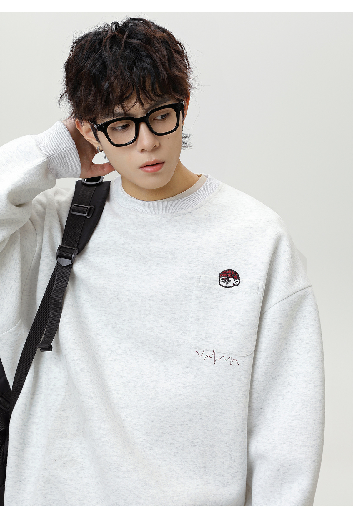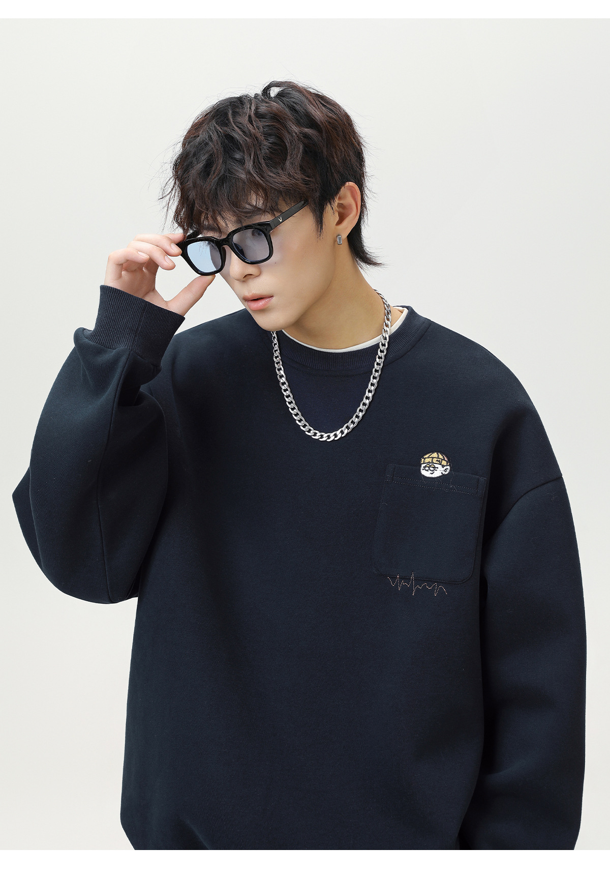 380g重磅复古质感刺绣圆领卫衣男秋季新款廓形宽松潮牌套头衫外套