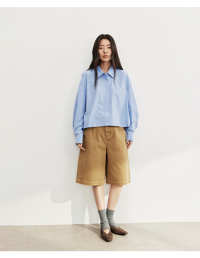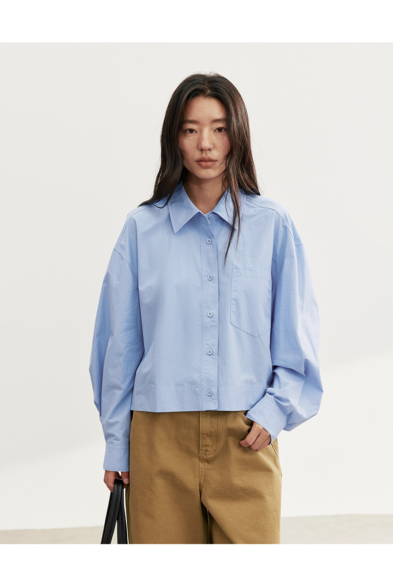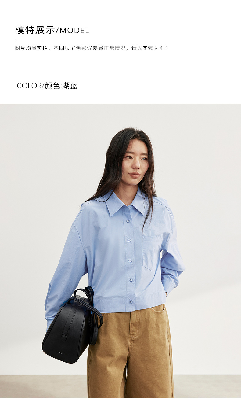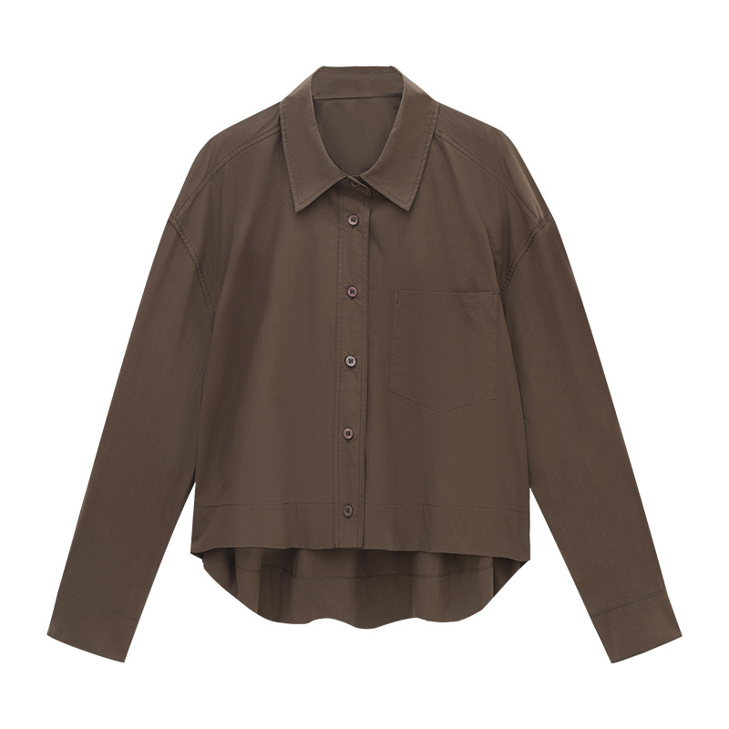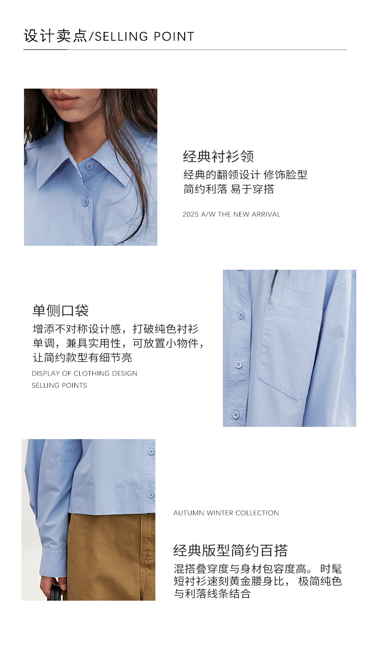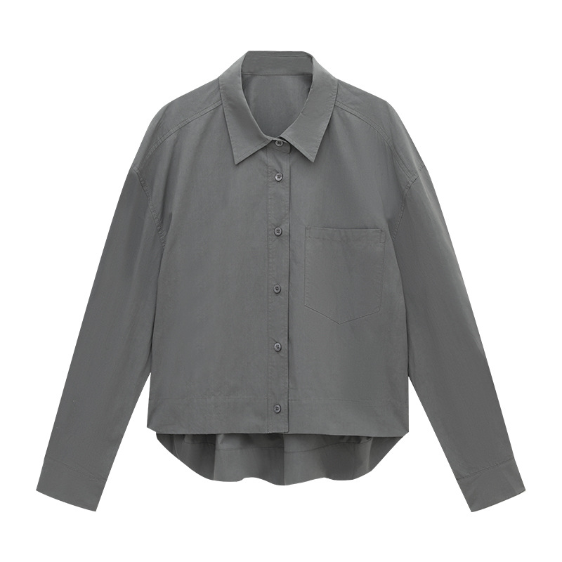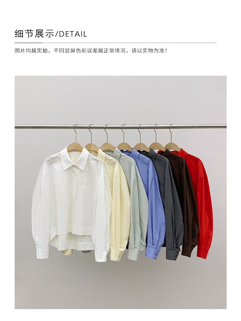 爱与南希十三行2025秋韩系纯棉宽松遮肉单排扣纯色长袖衬衫02723