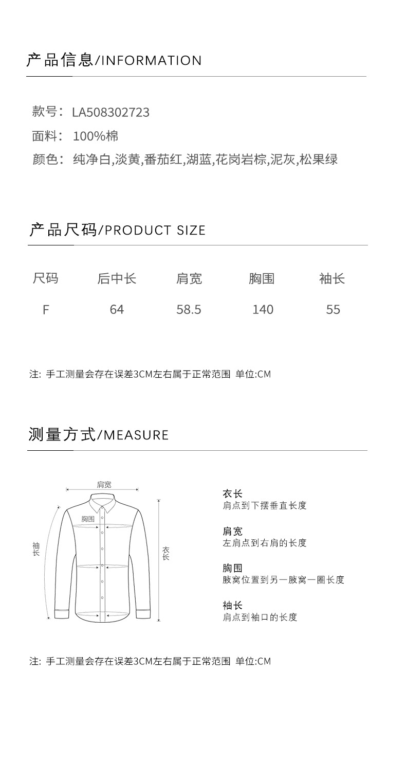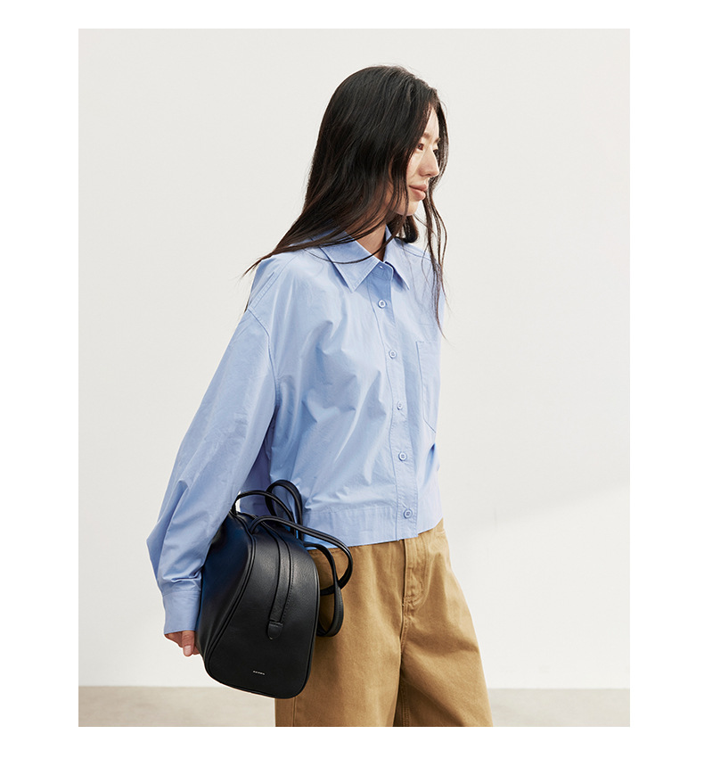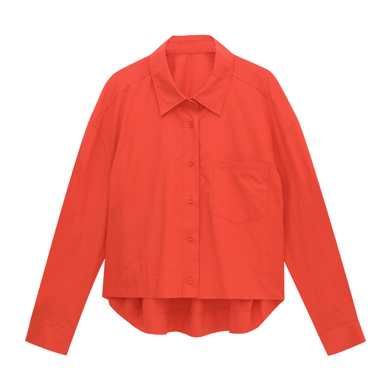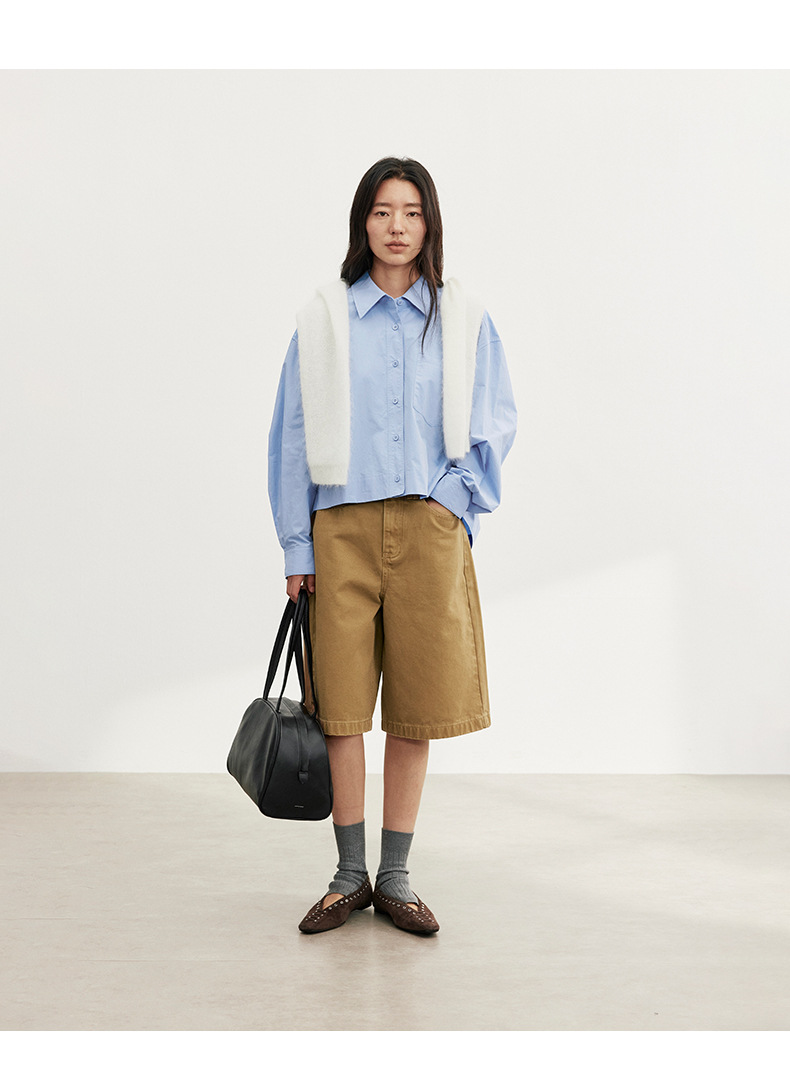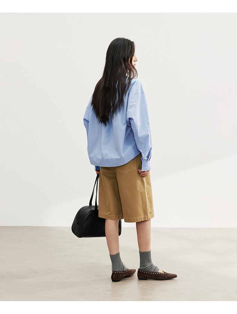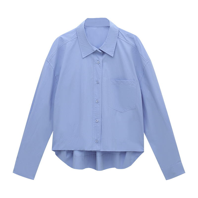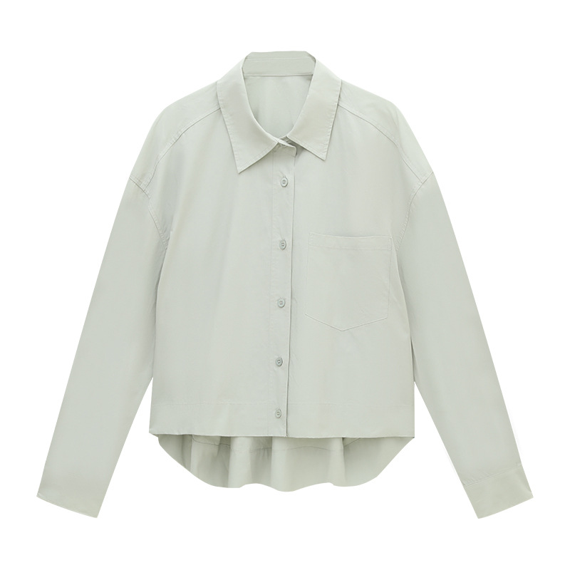爱与南希十三行2025秋韩系纯棉宽松遮肉单排扣纯色长袖衬衫02723