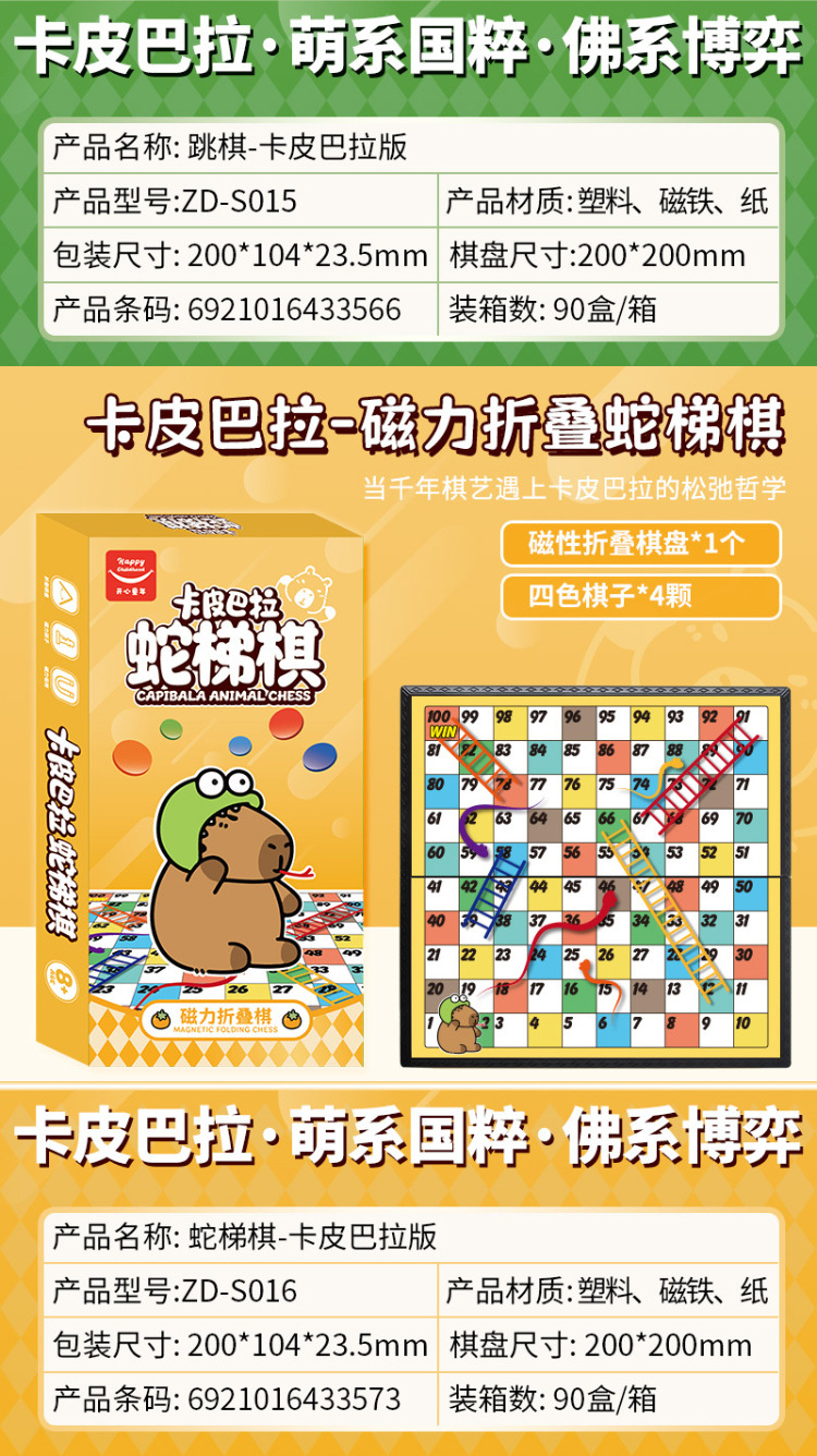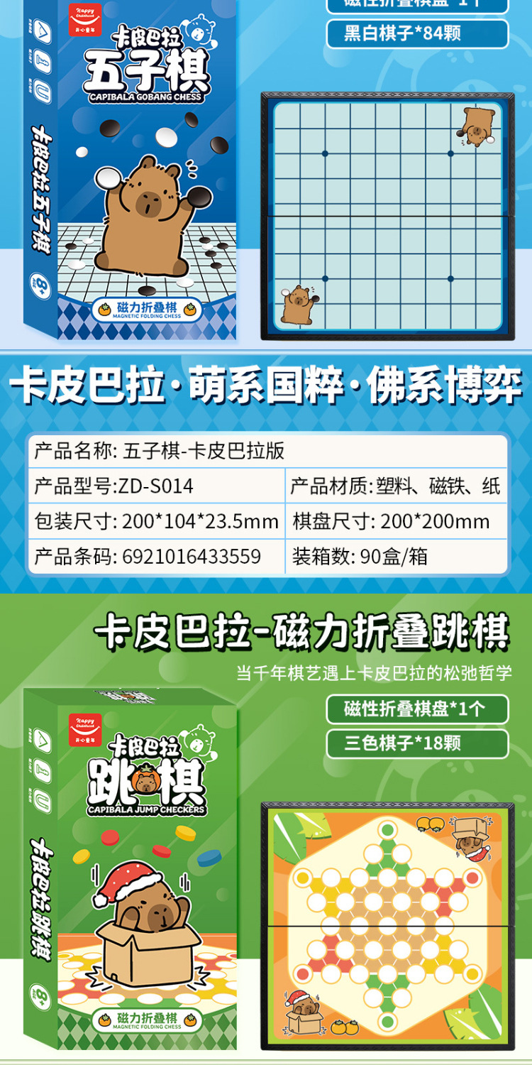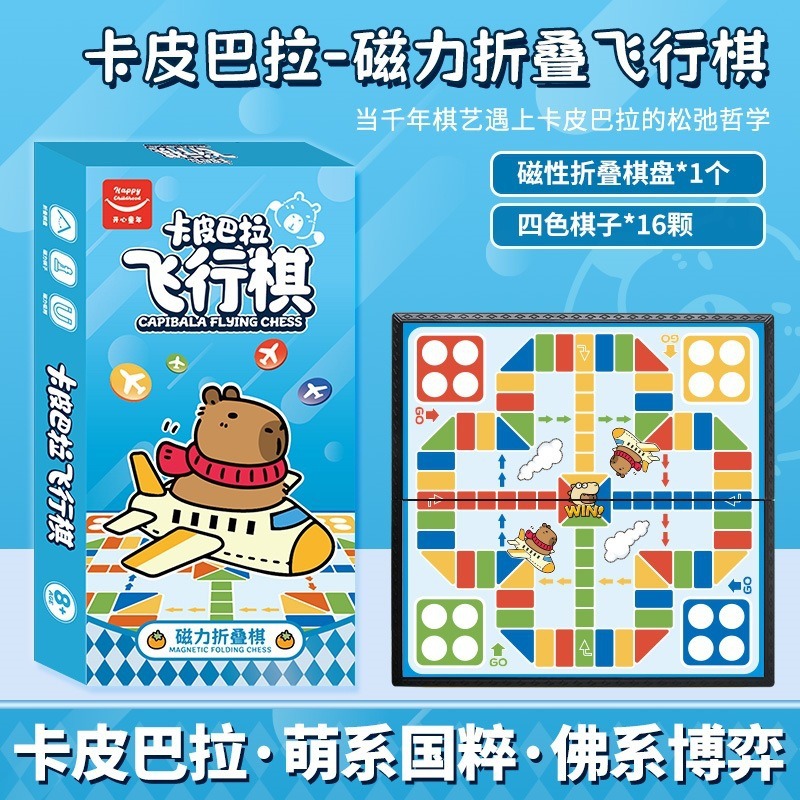 新款卡皮巴拉版盒装磁吸折叠游戏棋桌游象棋五子棋斗兽棋飞行棋