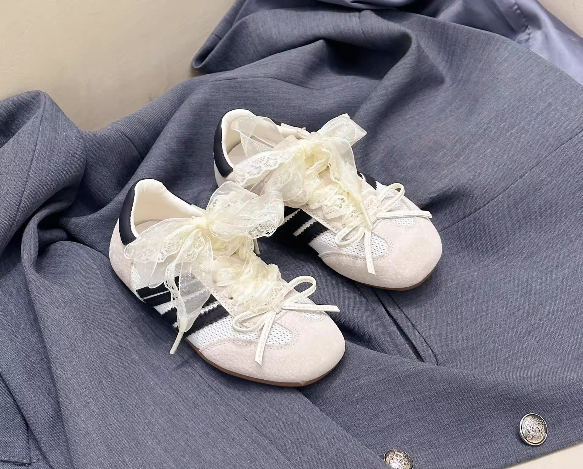 女童鞋子2025秋季新款儿童薄款小白德训网鞋宝宝网面透气运动板鞋