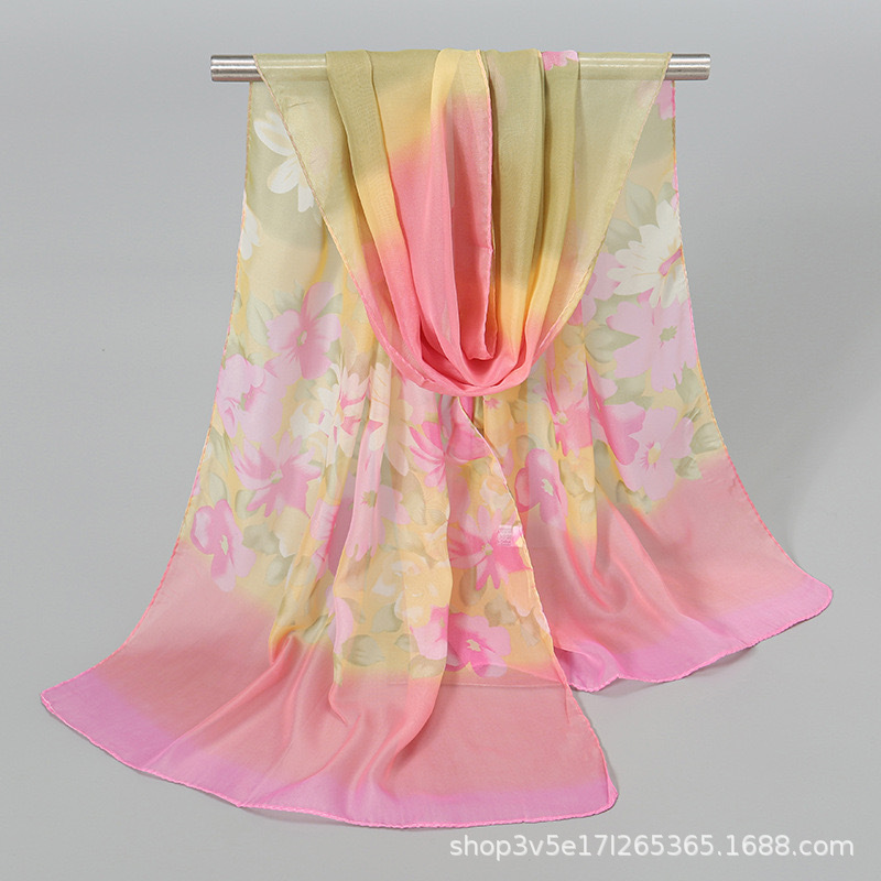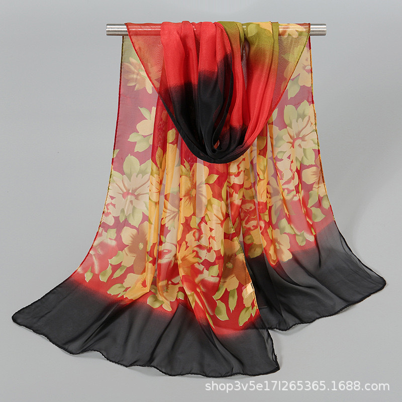 복고풍 스타일의 새로운 스타일 쉬폰 통기성 얇은 작은 실크 스카프 꽃 여성 봄, 가을 스카프 태양 보호 거즈 스카프 도매