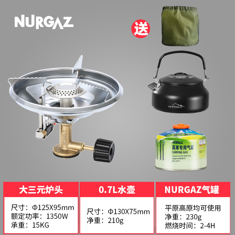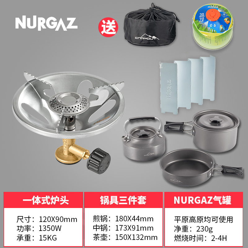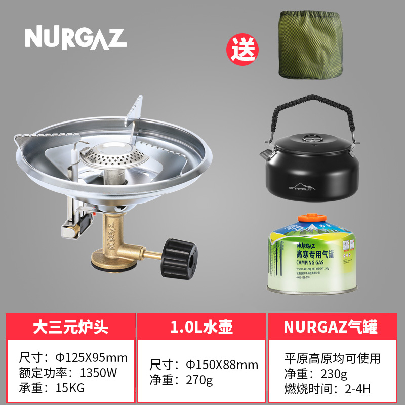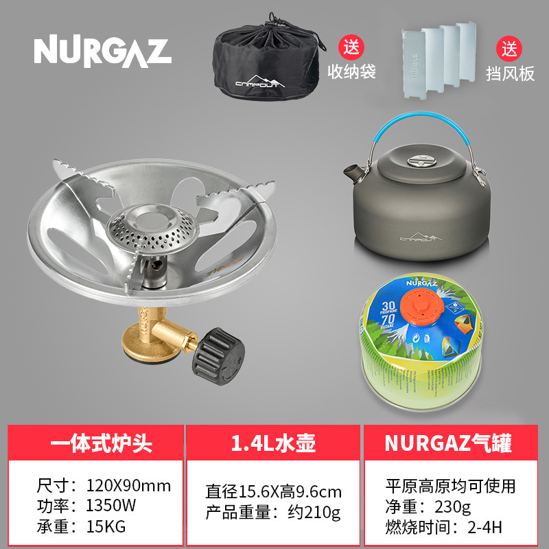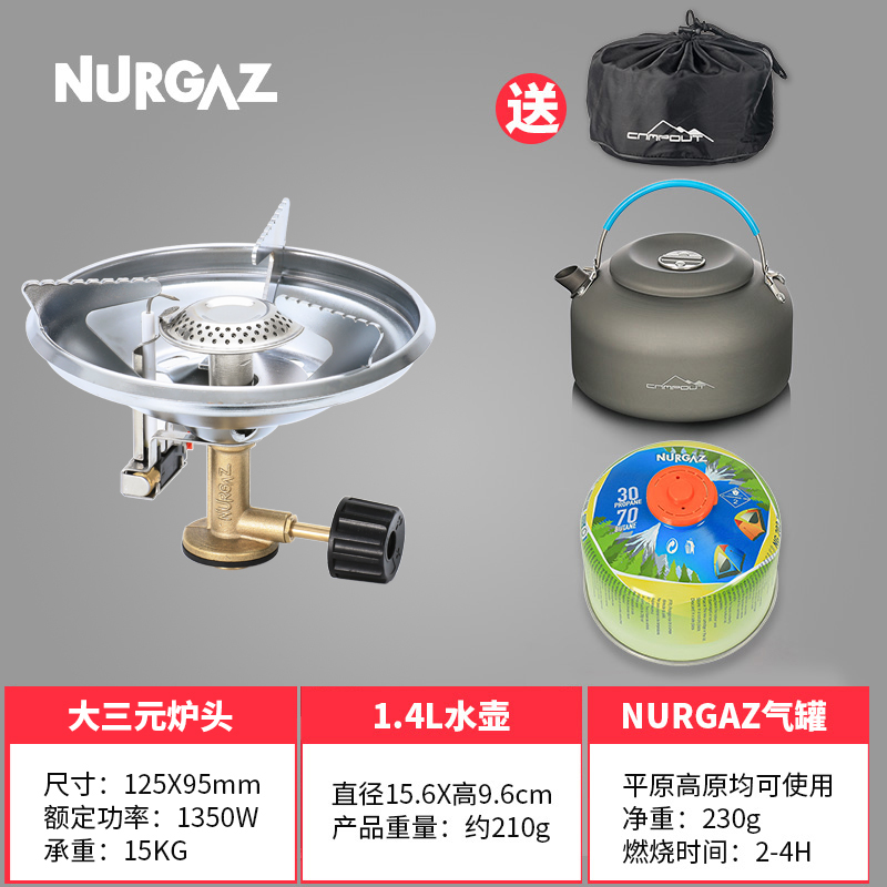 • 大三元炉/电子打火+收纳袋+气罐230g+1.4L水壶+挡风板