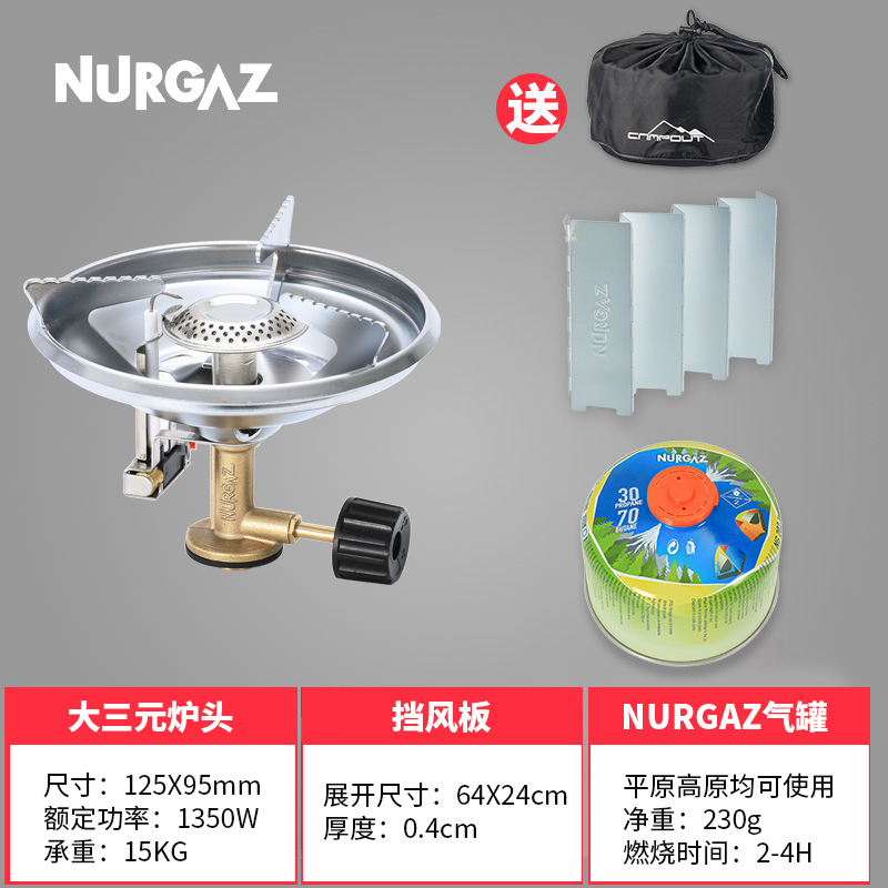 • 大三元炉/电子打火+收纳袋+气罐230g+挡风板