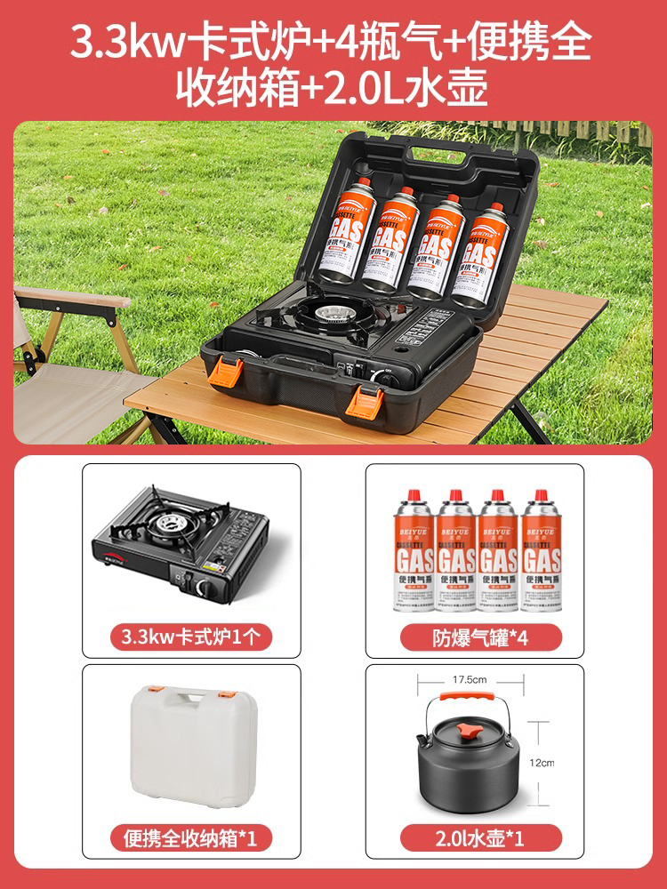 • 升级卡式炉+4瓶气+便携全收纳箱+2.0L水壶