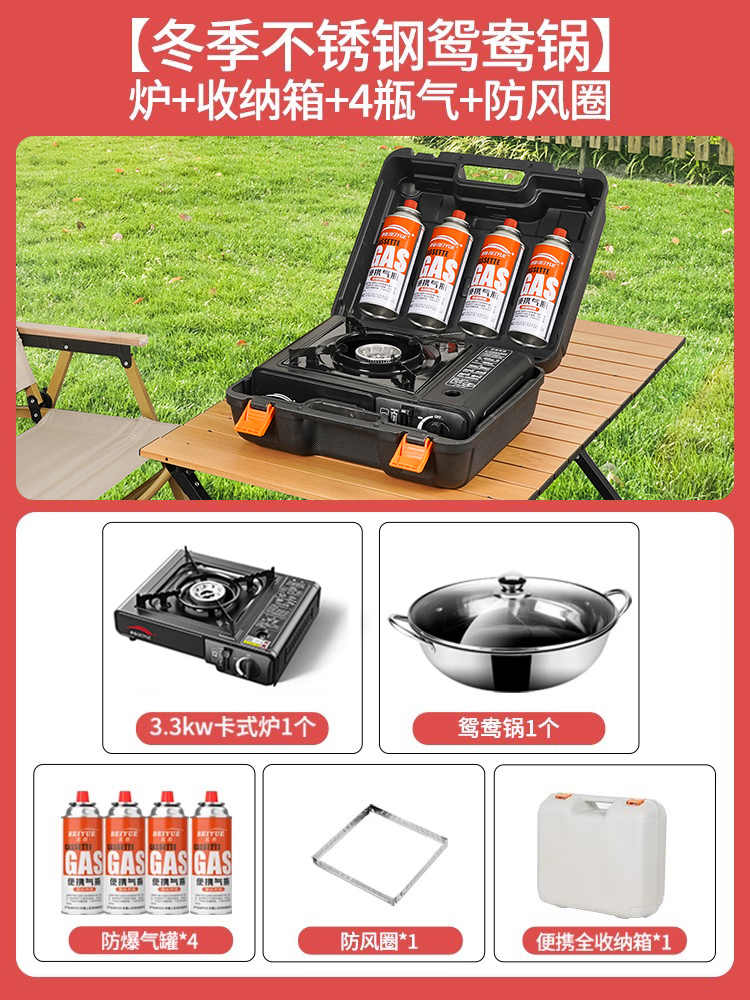• 掌柜推荐【冬季不锈钢鸳鸯锅】收纳箱+炉+4瓶气+防风圈