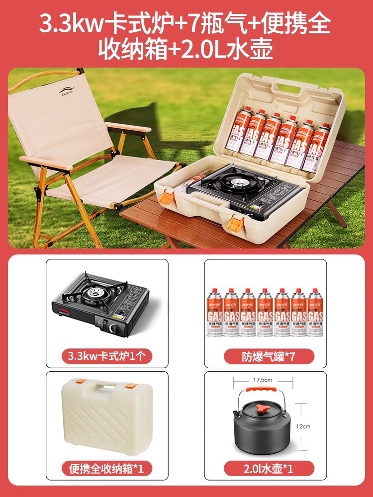 • 升级卡式炉+7瓶气+便携全收纳箱+2.0L水壶
