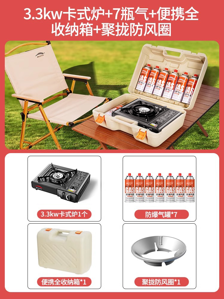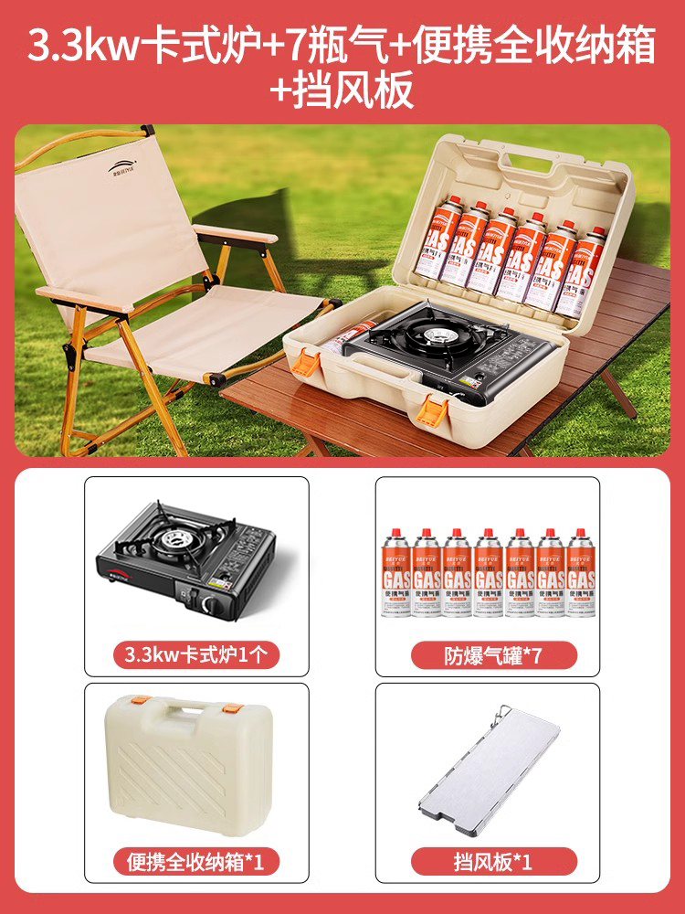 • 升级卡式炉+7瓶气+便携全收纳箱+挡风板