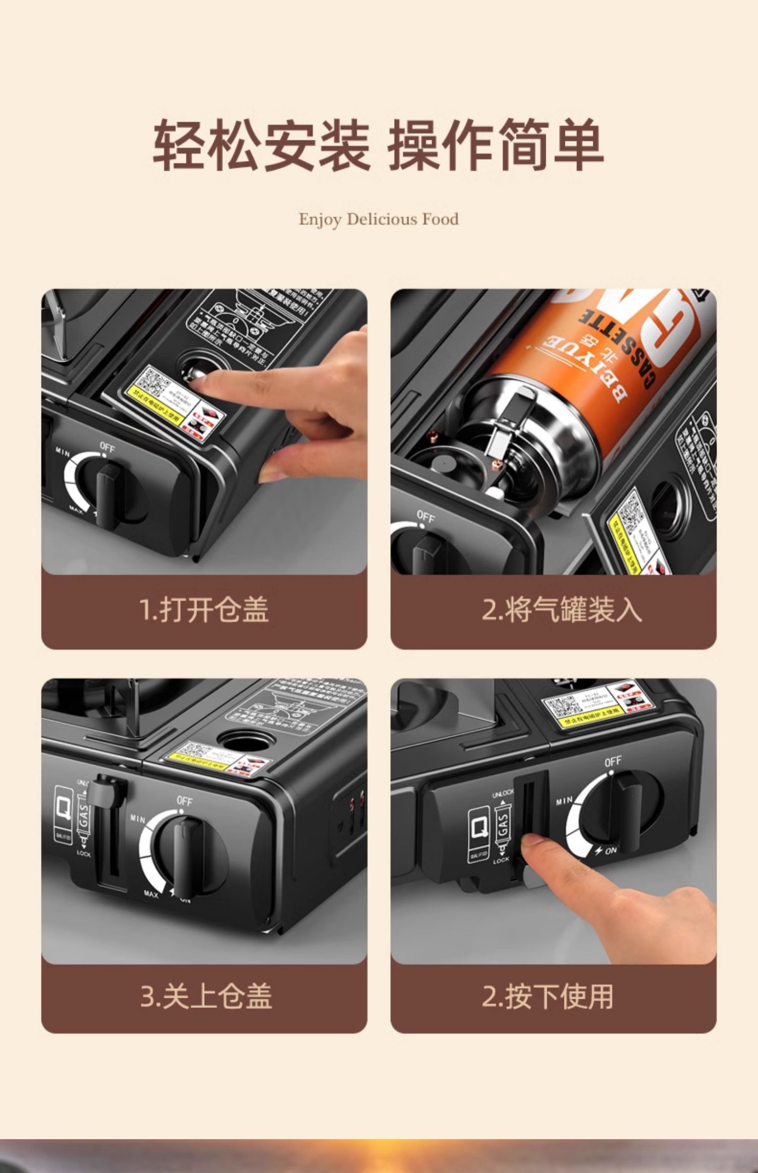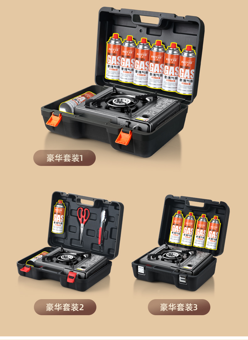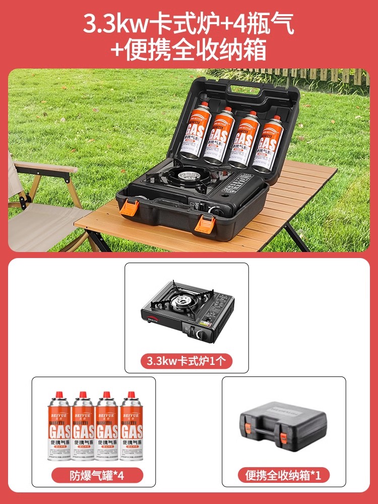 • 升级卡式炉(黑)+收纳箱+4瓶气
