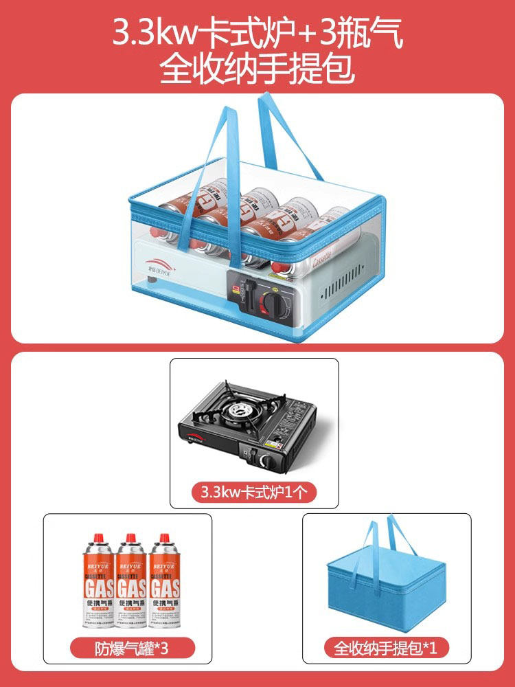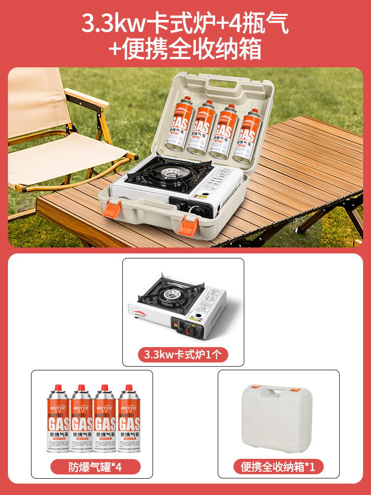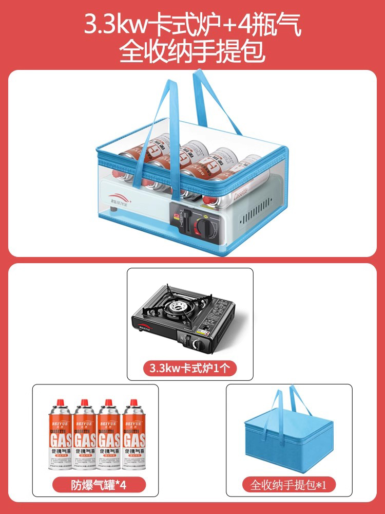 • 升级卡式炉(蓝)+4瓶气+便携全收纳箱