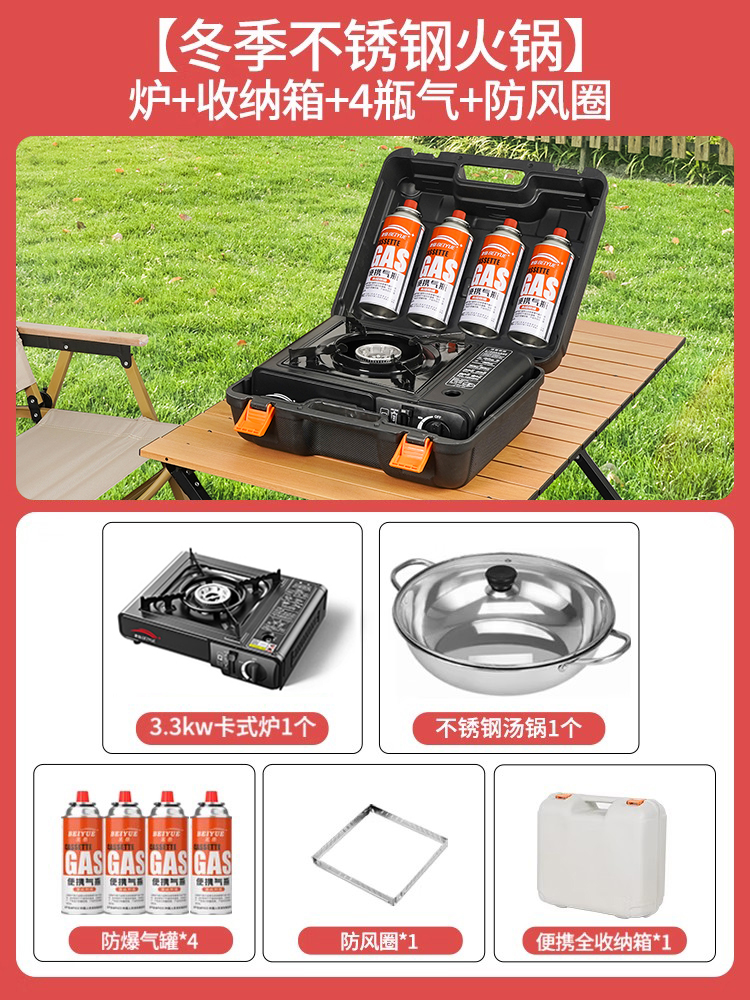 • 【冬季不锈钢火锅】收纳箱+炉+4瓶气+防风圈