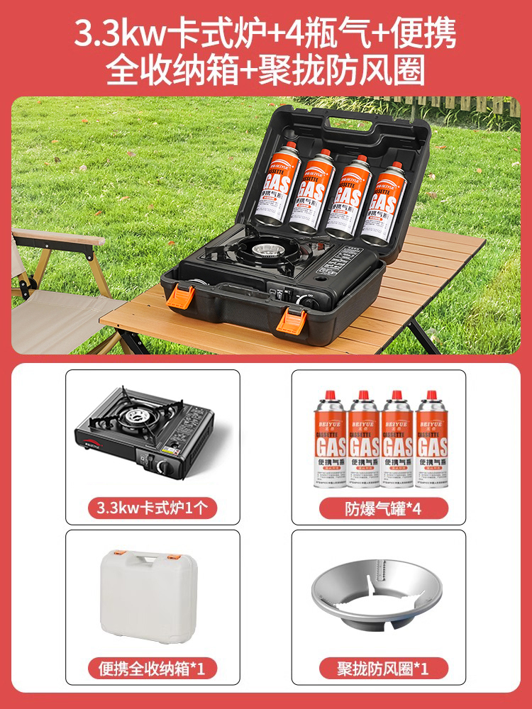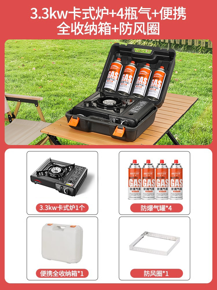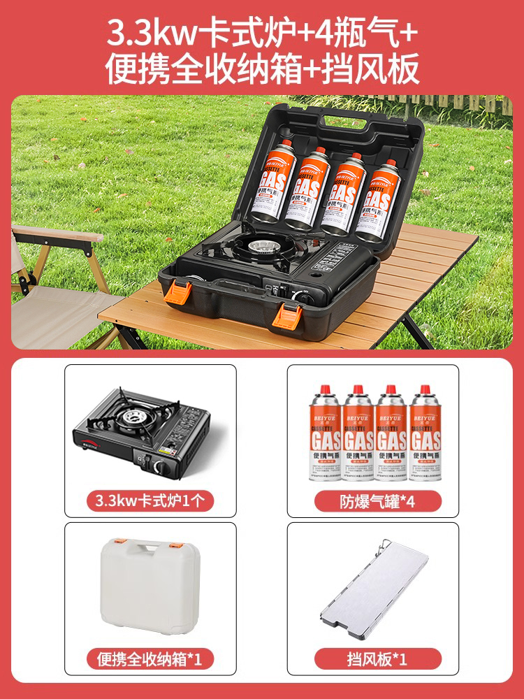 • 掌柜推荐升级卡式炉+收纳箱+4瓶气+聚能防风罩【升级防风套餐】
