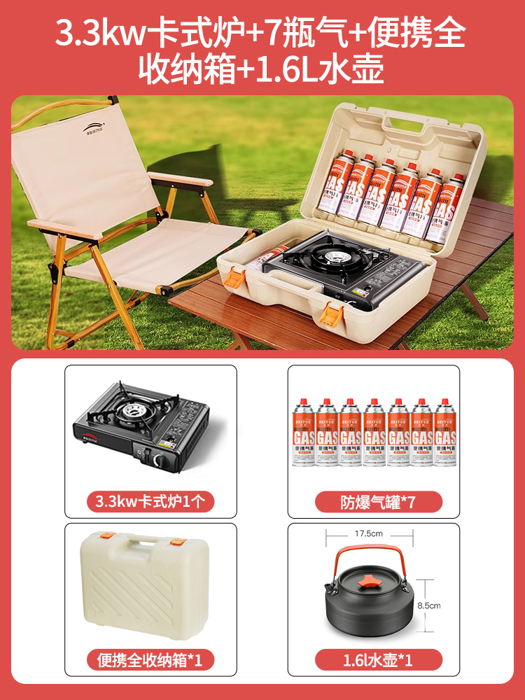 • 升级卡式炉+7瓶气+便携全收纳箱