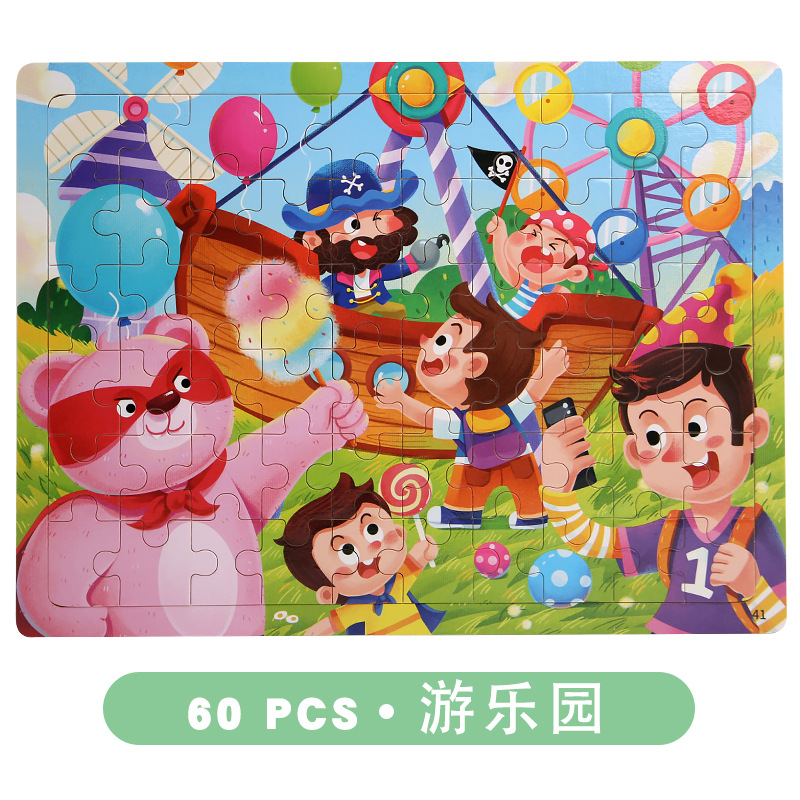 儿童跨境益智早教木制60片动漫卡通3——6岁趣味动手平面拼图拼板스토어 가기
