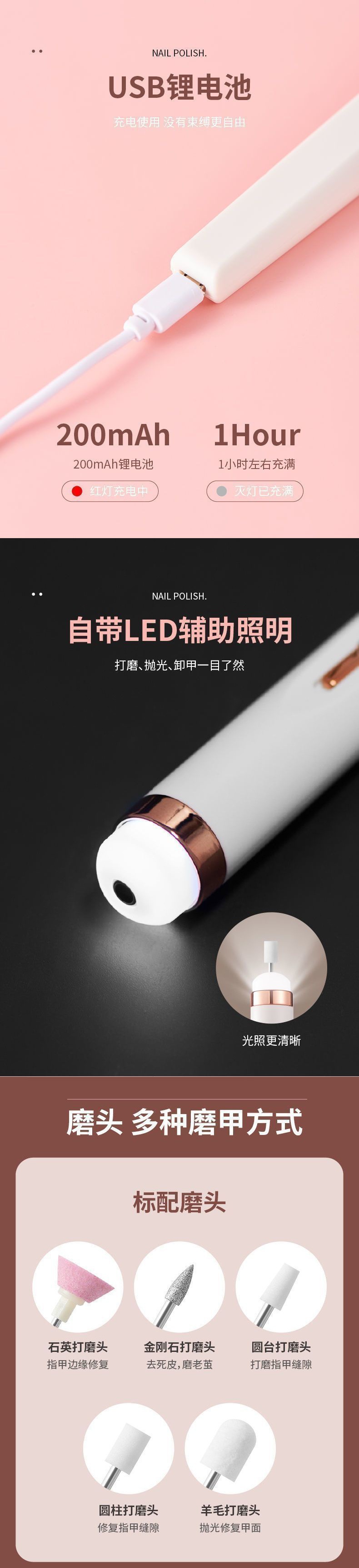 电动灰指甲打磨机厚指甲老人指甲磨甲器修甲刀灰厚甲脚指修甲工具