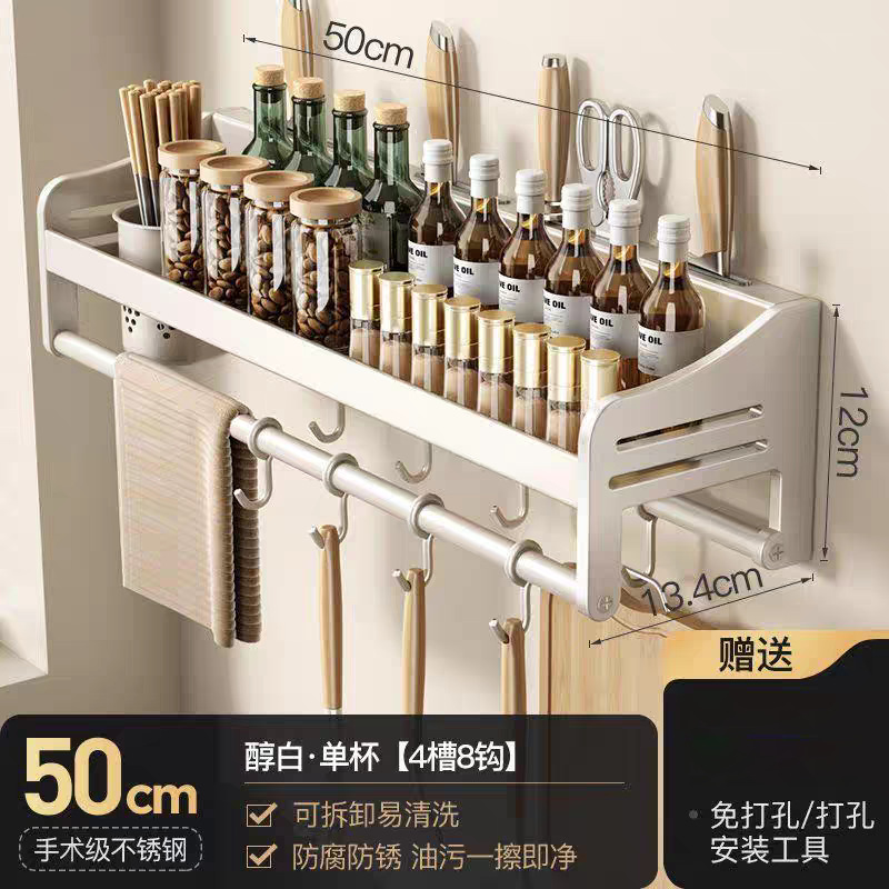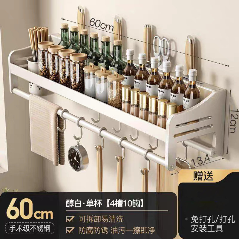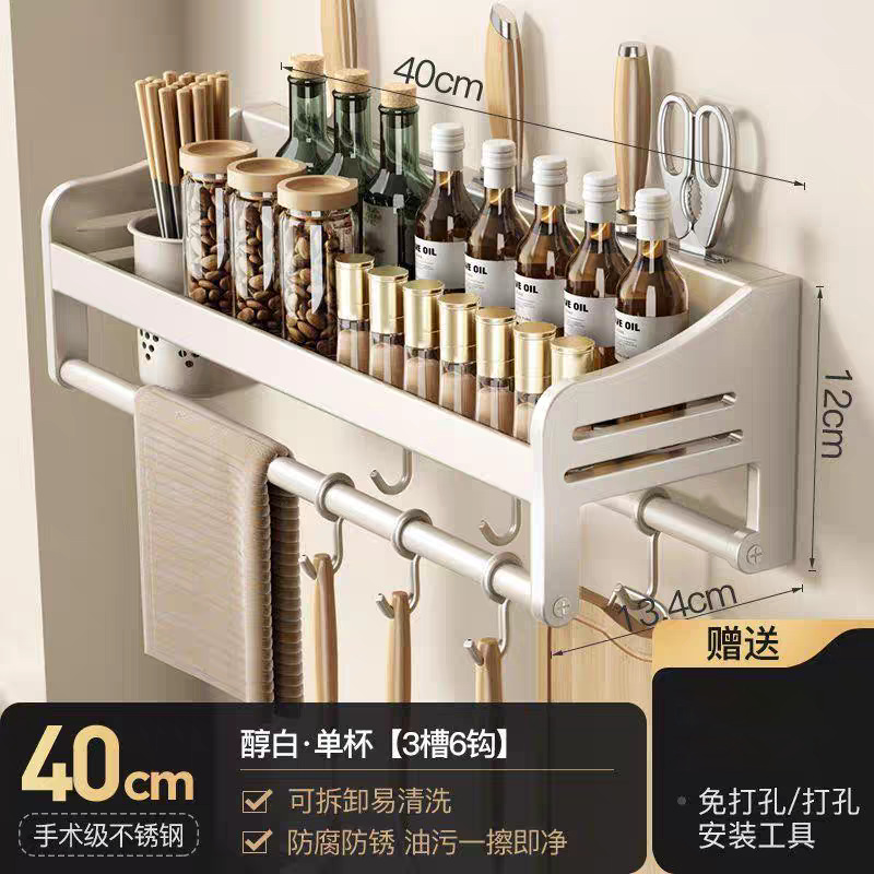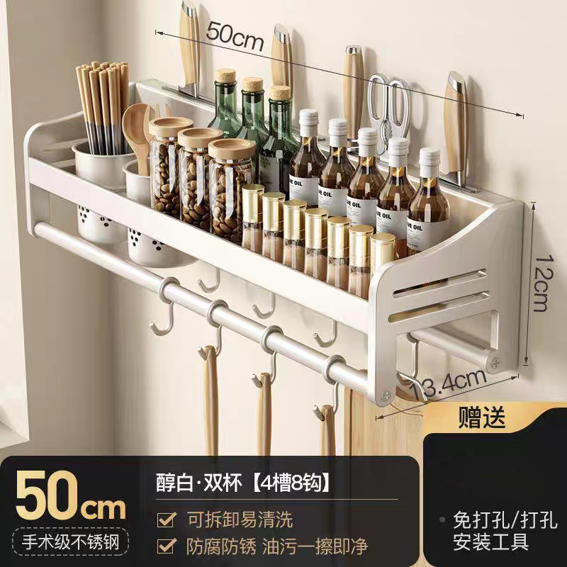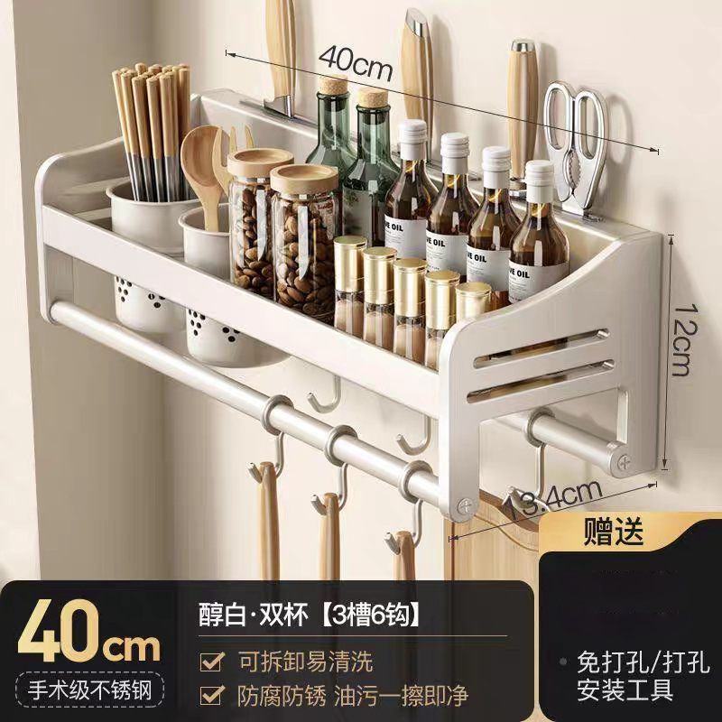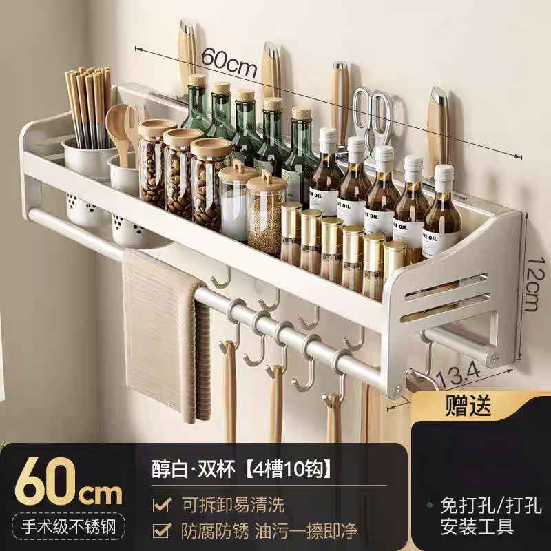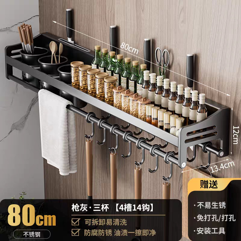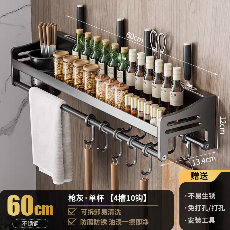 주방 수납 선반 스테인레스 스틸 펀치없는 벽걸이 형 가정용 조미료 젓가락 칼 홀더 용품 수납 선반스토어 가기