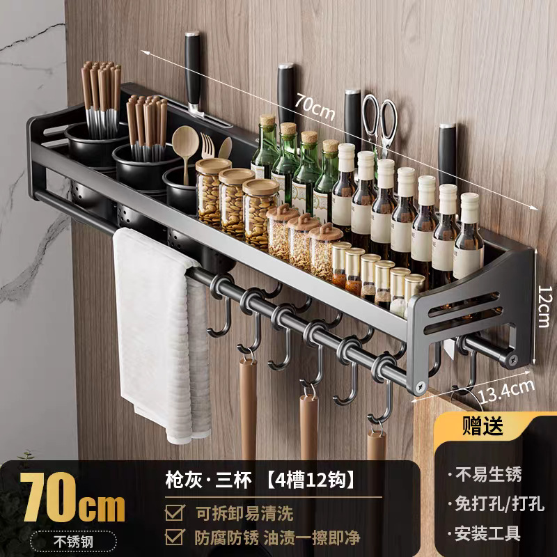주방 수납 선반 스테인레스 스틸 펀치없는 벽걸이 형 가정용 조미료 젓가락 칼 홀더 용품 수납 선반