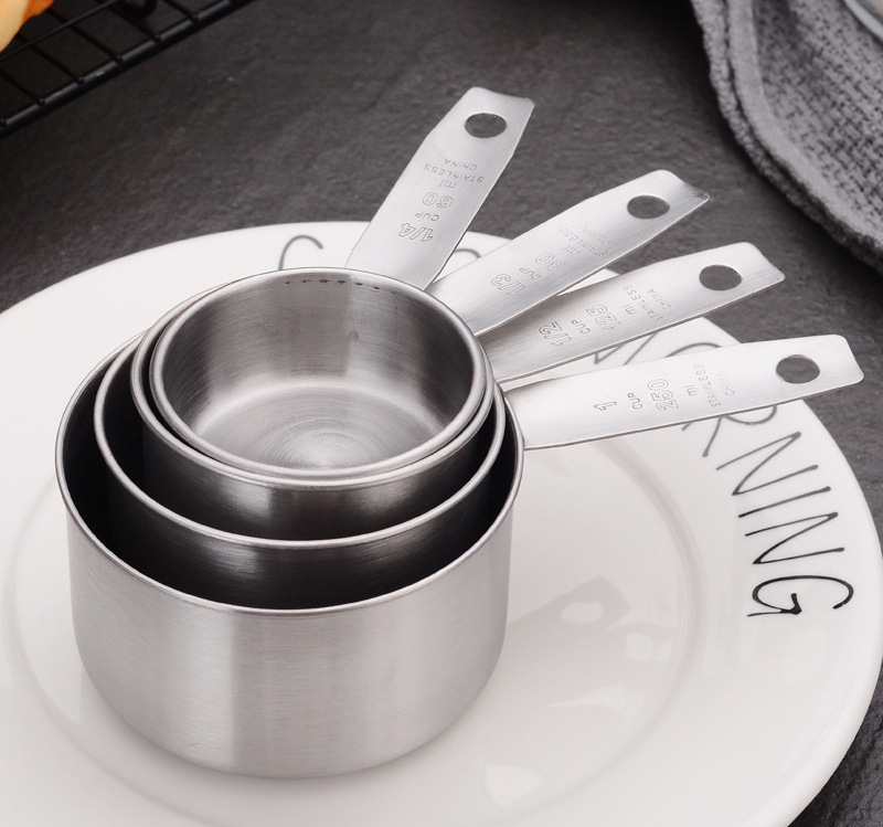 스테인레스 스틸 4 피스 세트 조합 측정 숟가락 측정 스푼 스케일 측정 컵 스테인레스 스틸 주방 용품 조합 세트