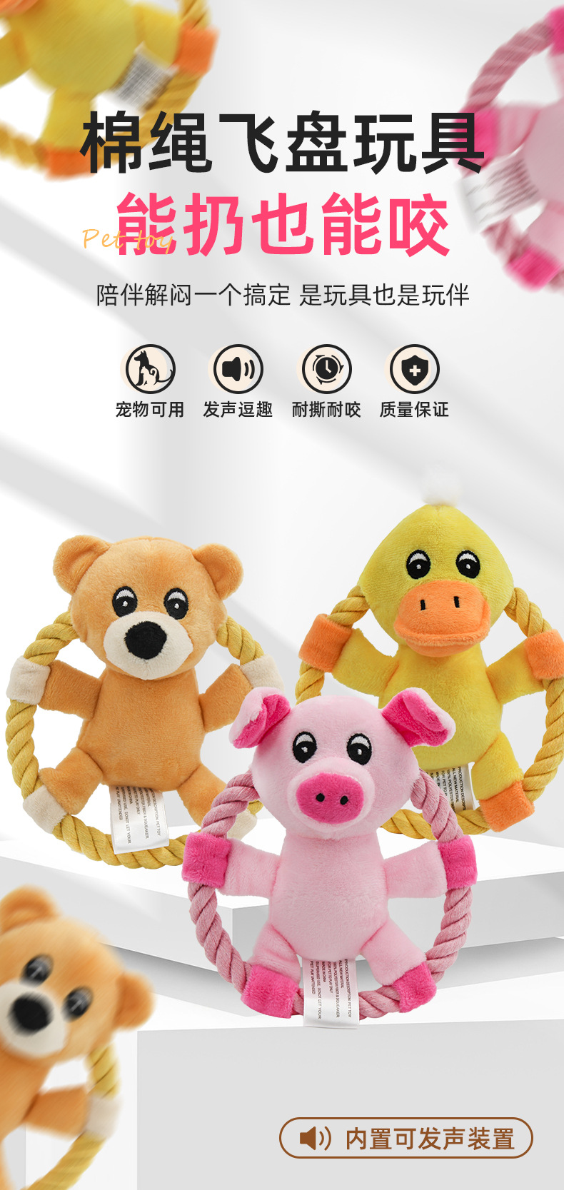 애완 동물 강아지 던지기 밧줄 매듭 프리스비 장난감 개 던지기 씹는 어금니 치아 청소 훈련 장난감 소리 인형스토어 가기