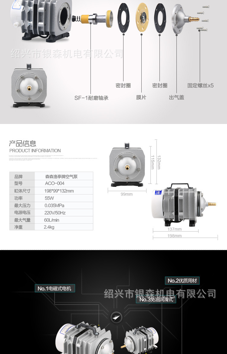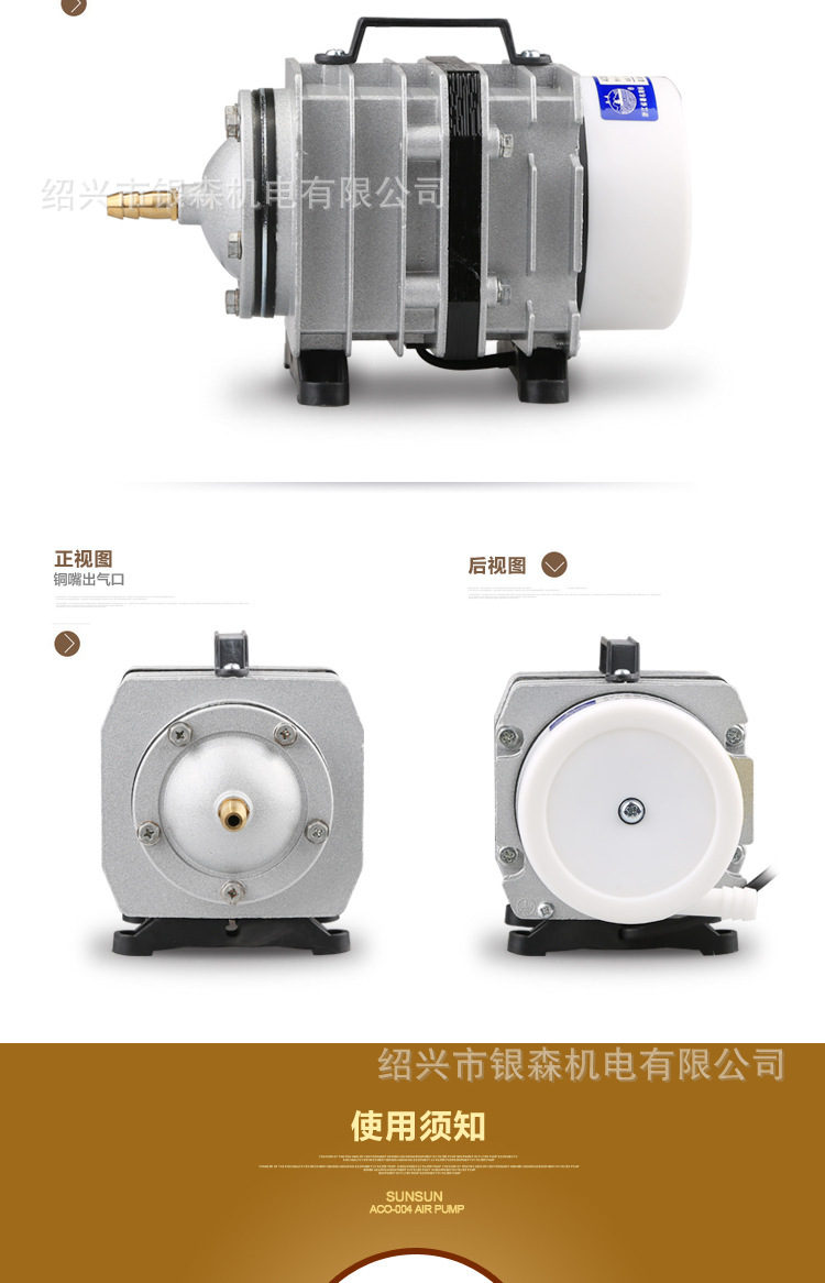 1、采用电磁式电机,活塞直线往复运动产生气流,结构更合理。