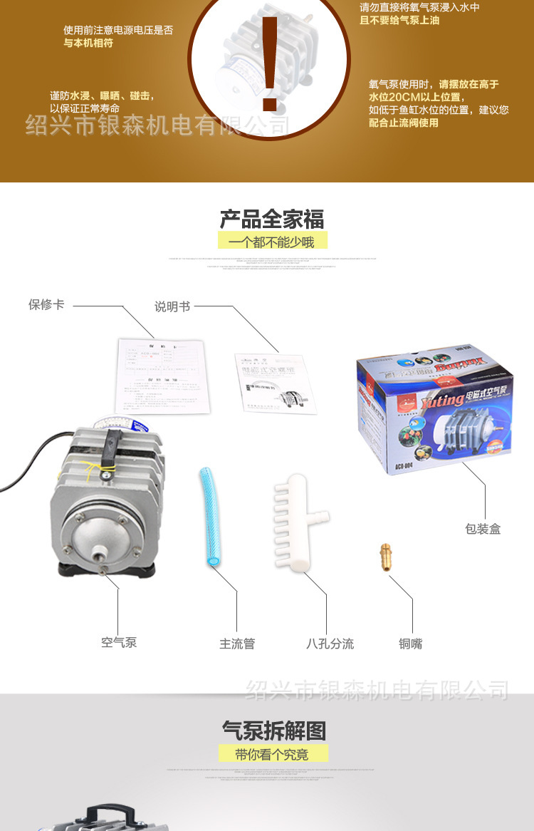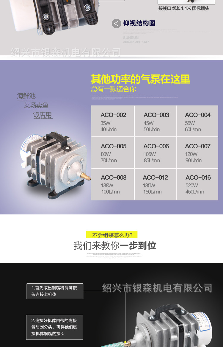 유팅 브랜드 ACO-001 시리즈 전자기 공기 펌프 어항 통기 연못 양식 통기 펌프
