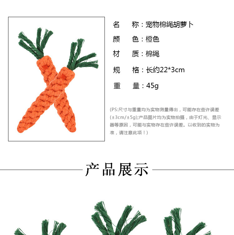공장 직송 수제 뜨개질 애완동물 면 로프 당근 강아지 내구성 있는 치아 관리 장난감 애완동물 용품스토어 가기