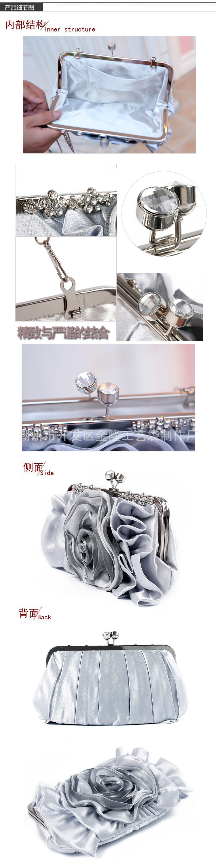 새로운 다이아몬드 박힌 로즈 플라워 백 연회 숄더 크로스바디 백 원피스 백 한푸 치파오 백 클러치 백