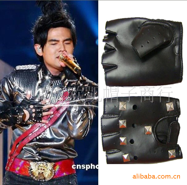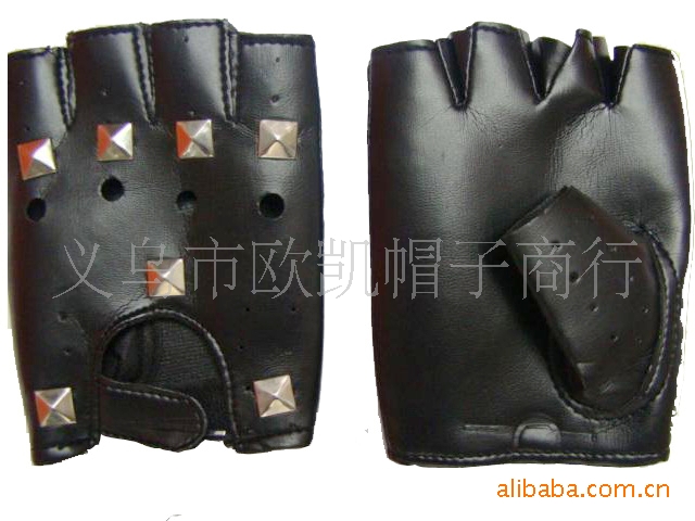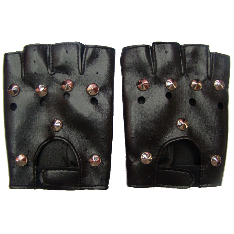厂家直销 演唱会用短指带铆钉皮手套