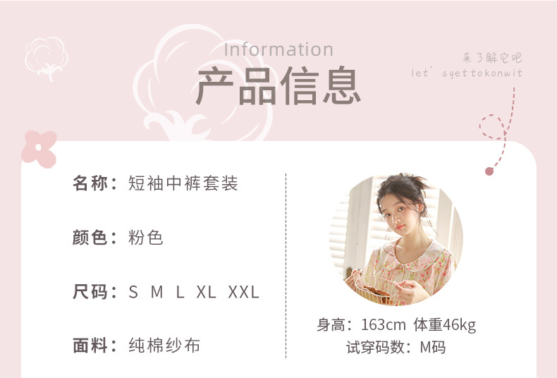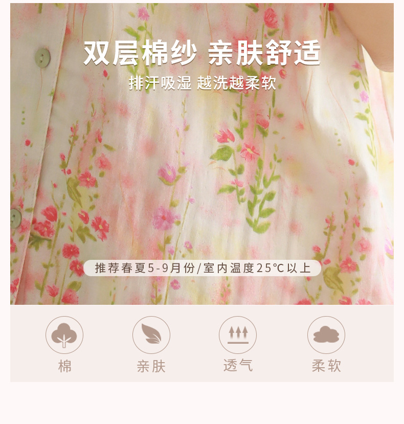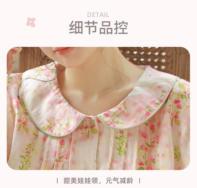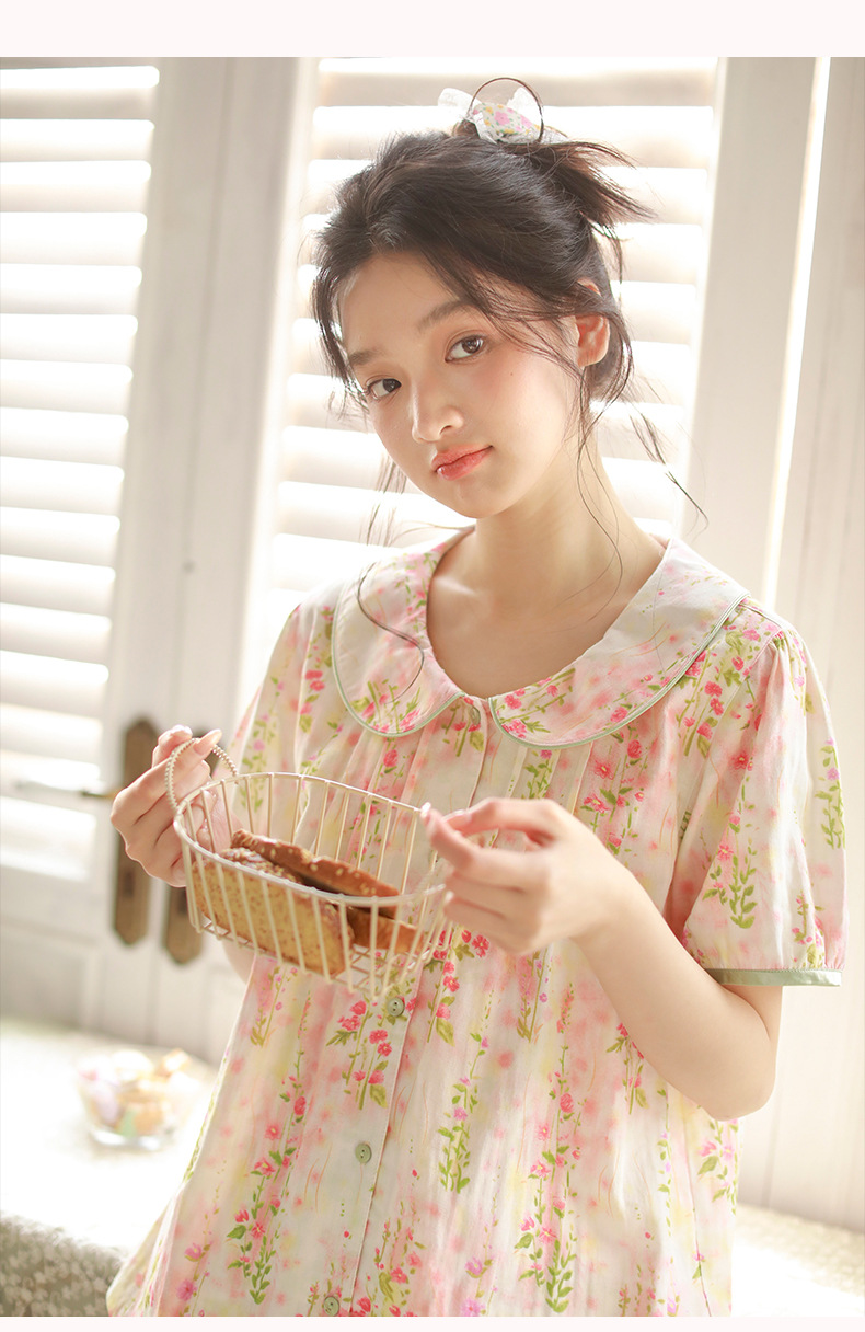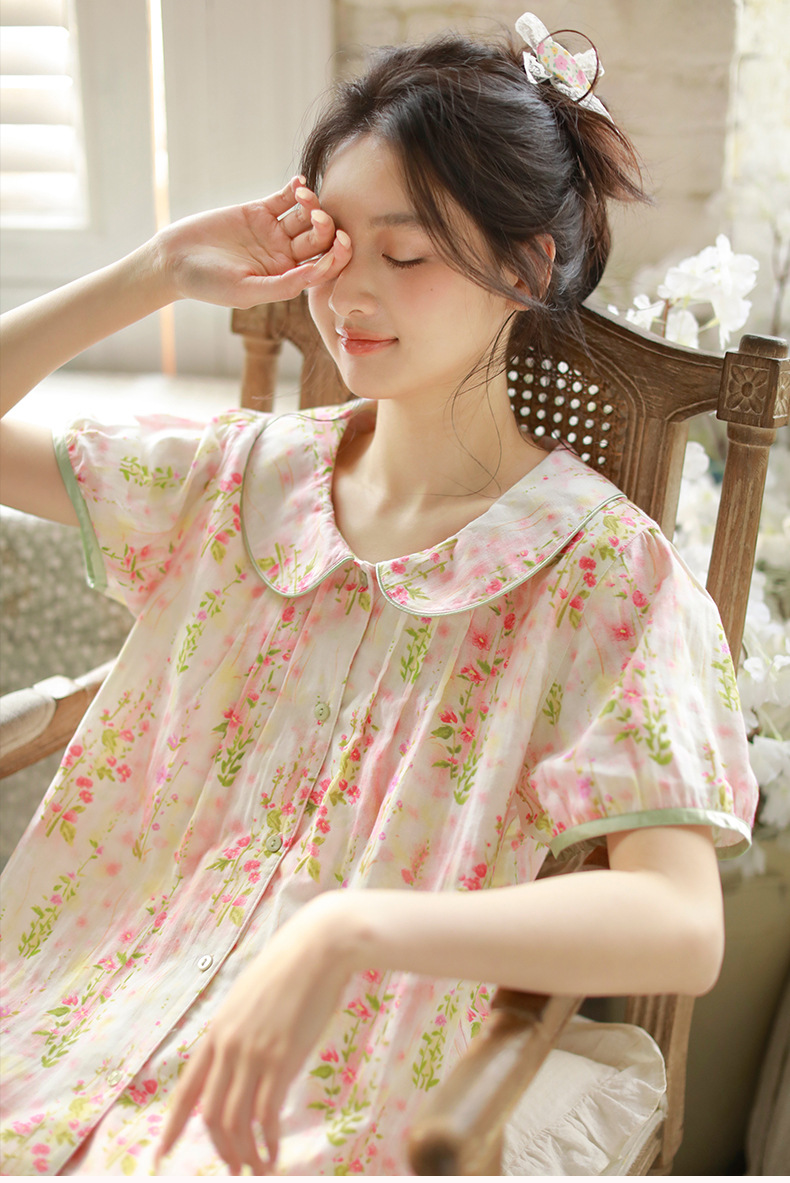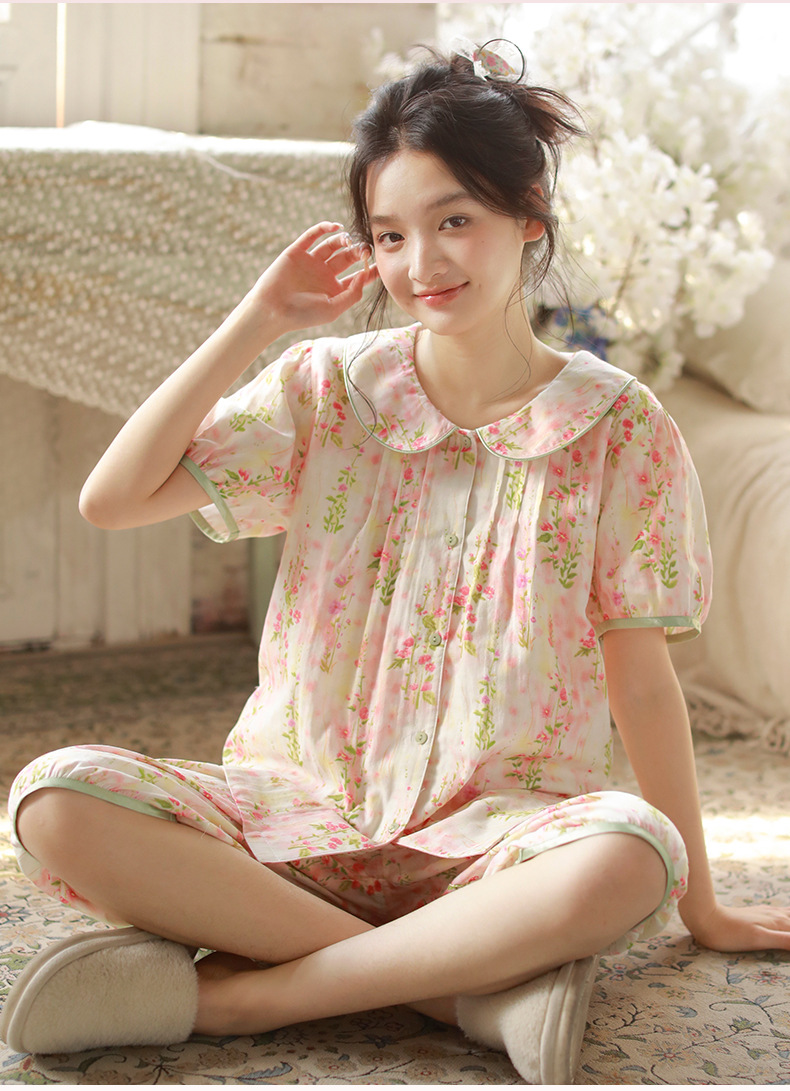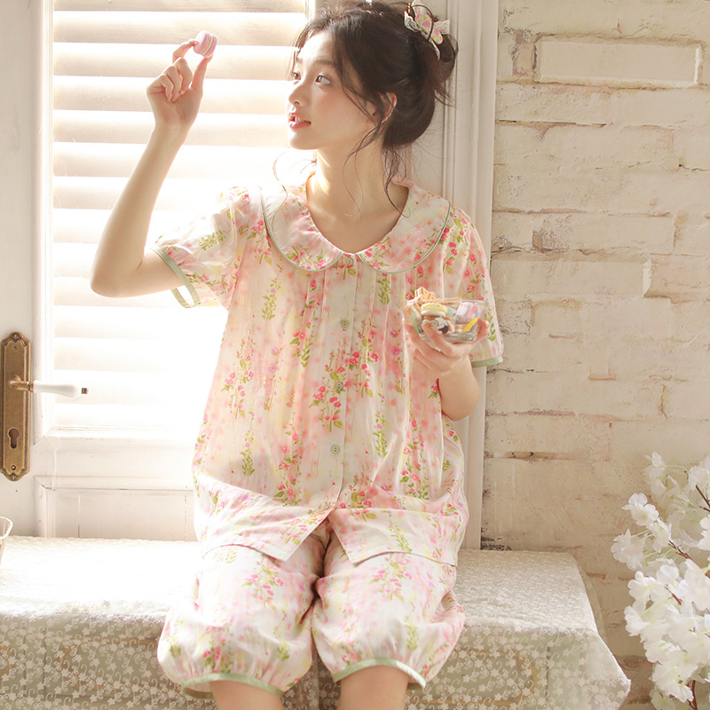 여성용 여름 잠옷, 한국식 달콤한 프린트 순면 잠옷, 여성용 여름 신작 루즈한 면 거즈 홈웨어 세트스토어 가기