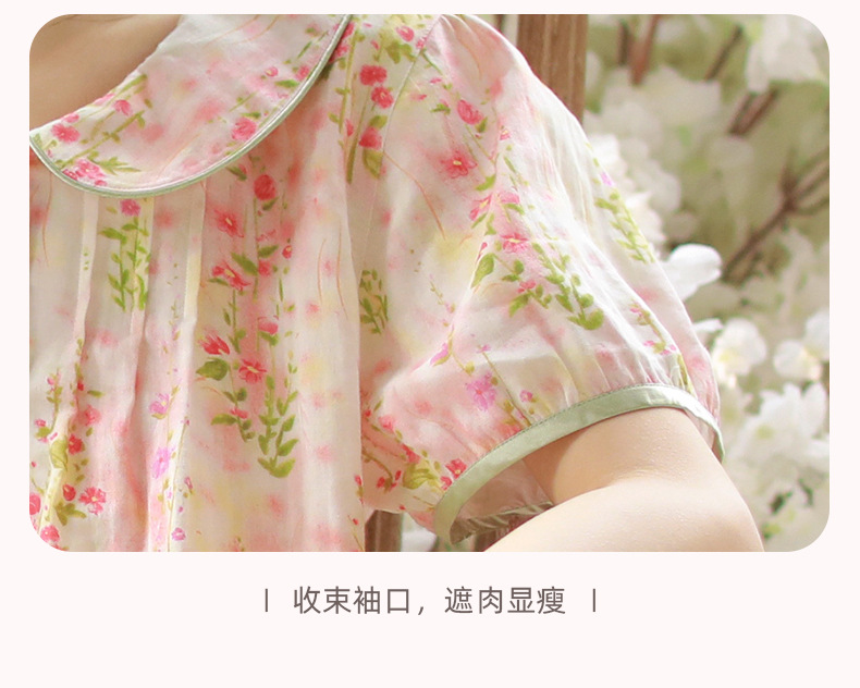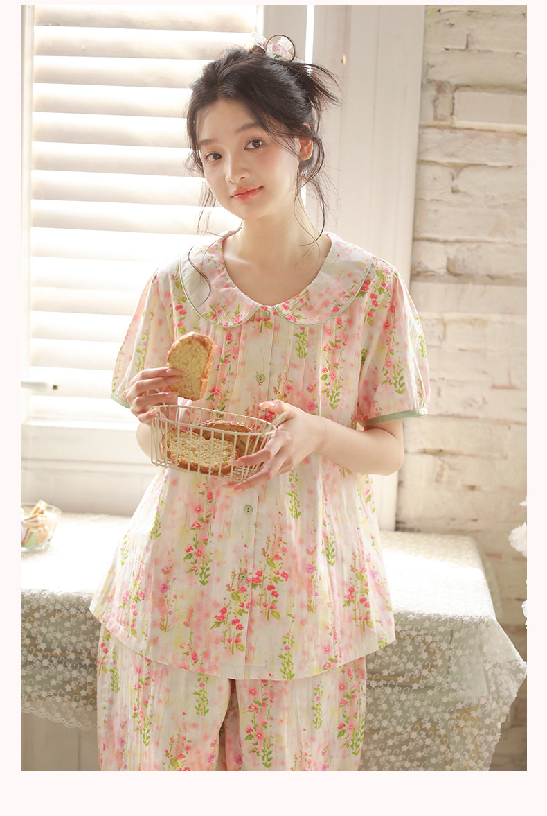 여성용 여름 잠옷, 한국식 달콤한 프린트 순면 잠옷, 여성용 여름 신작 루즈한 면 거즈 홈웨어 세트