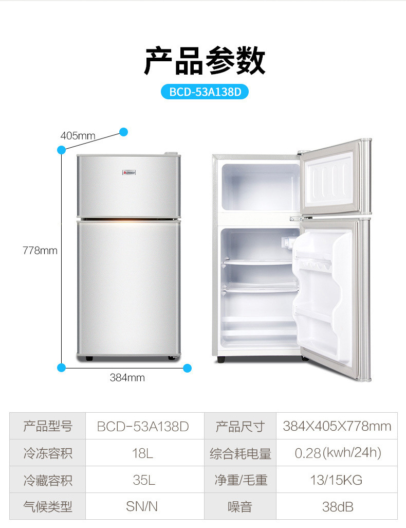 소형 냉장고 가정용 1등급 에너지 효율 기숙사용 사무실용 냉장/냉동 겸용 양문형 냉장고 절전형스토어 가기