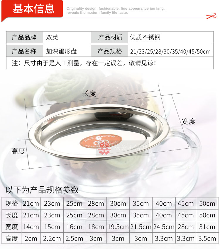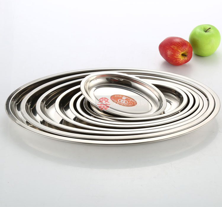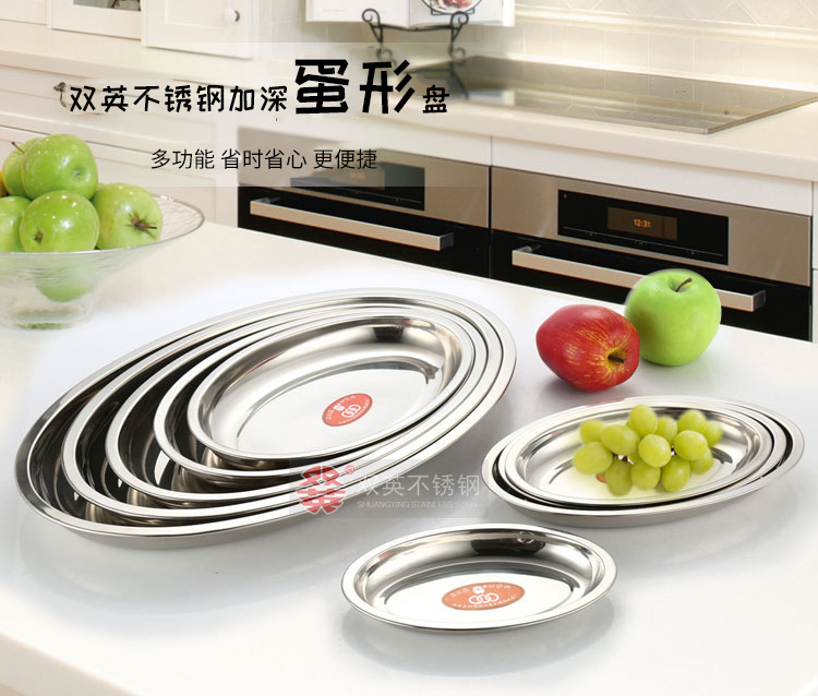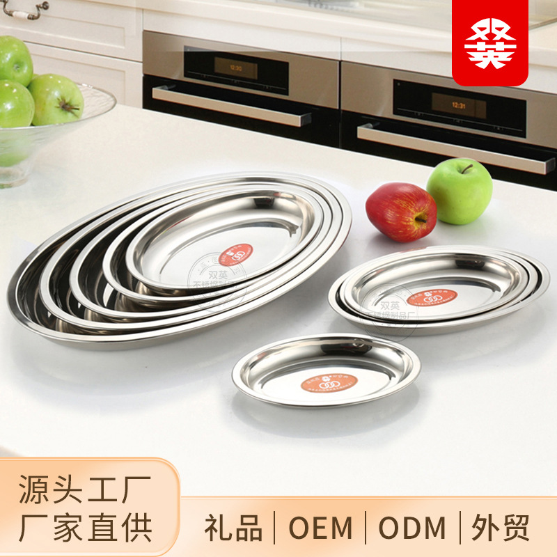 두껍고 깊은 스테인리스 달걀 모양 접시, 가정용 접시, 호텔 식기, 스테인리스 트레이, 타원형 생선구이 접시스토어 가기
