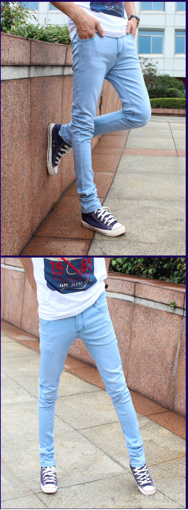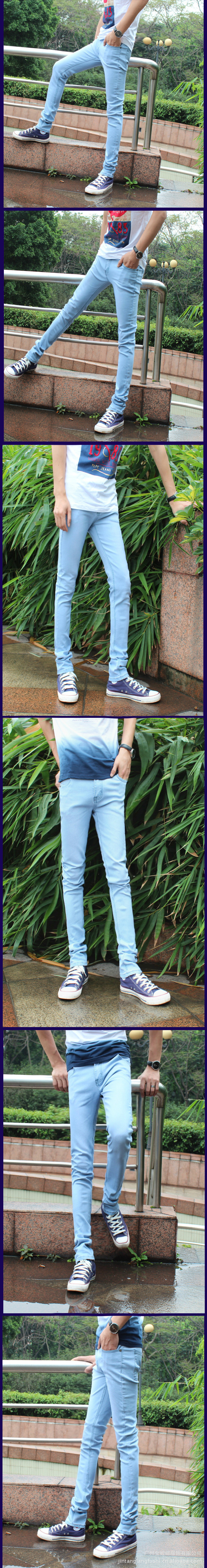 크로스보더 유럽과 미국 AliExpress 남성용 봄과 가을 하늘색 슬림핏 청바지 남성용 신축성 있는 슬림핏 팬츠스토어 가기