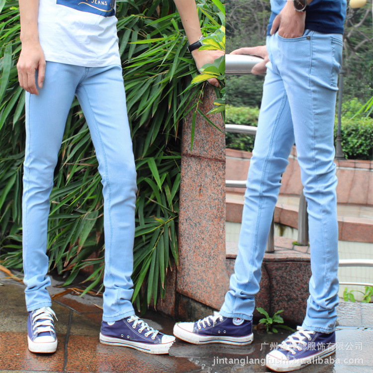 크로스보더 유럽과 미국 AliExpress 남성용 봄과 가을 하늘색 슬림핏 청바지 남성용 신축성 있는 슬림핏 팬츠