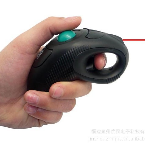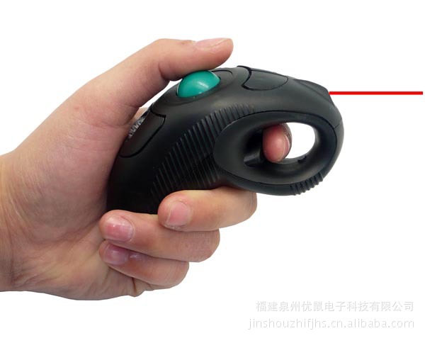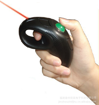 无线激光鼠标带光笔,人体工学设计,手感舒适,无需桌面支撑,握于手中滚动轨迹球移动光标,左右手通用,带有激光笔又称电子教鞭,是专门为计算机及多媒体投影机设计的一款新型产品,便于简报演讲。