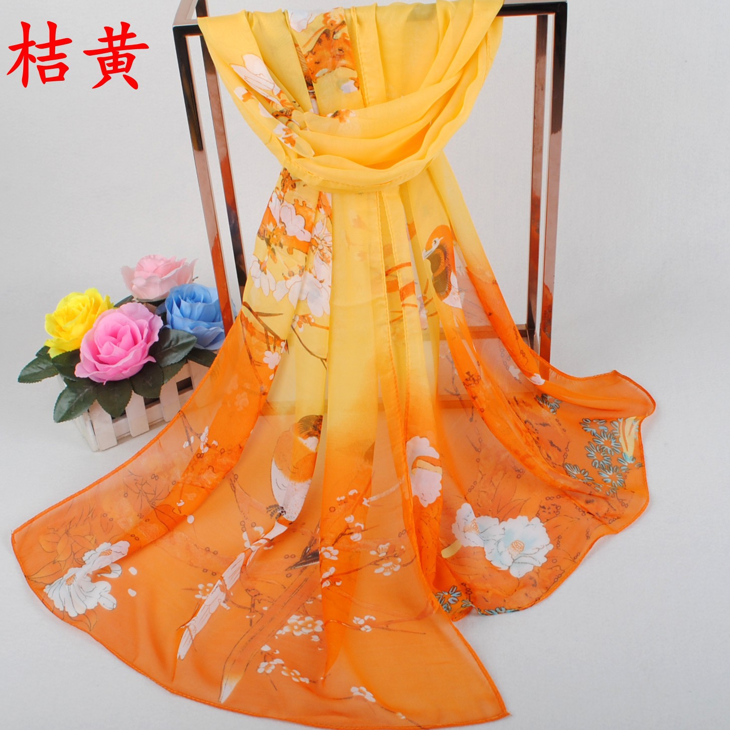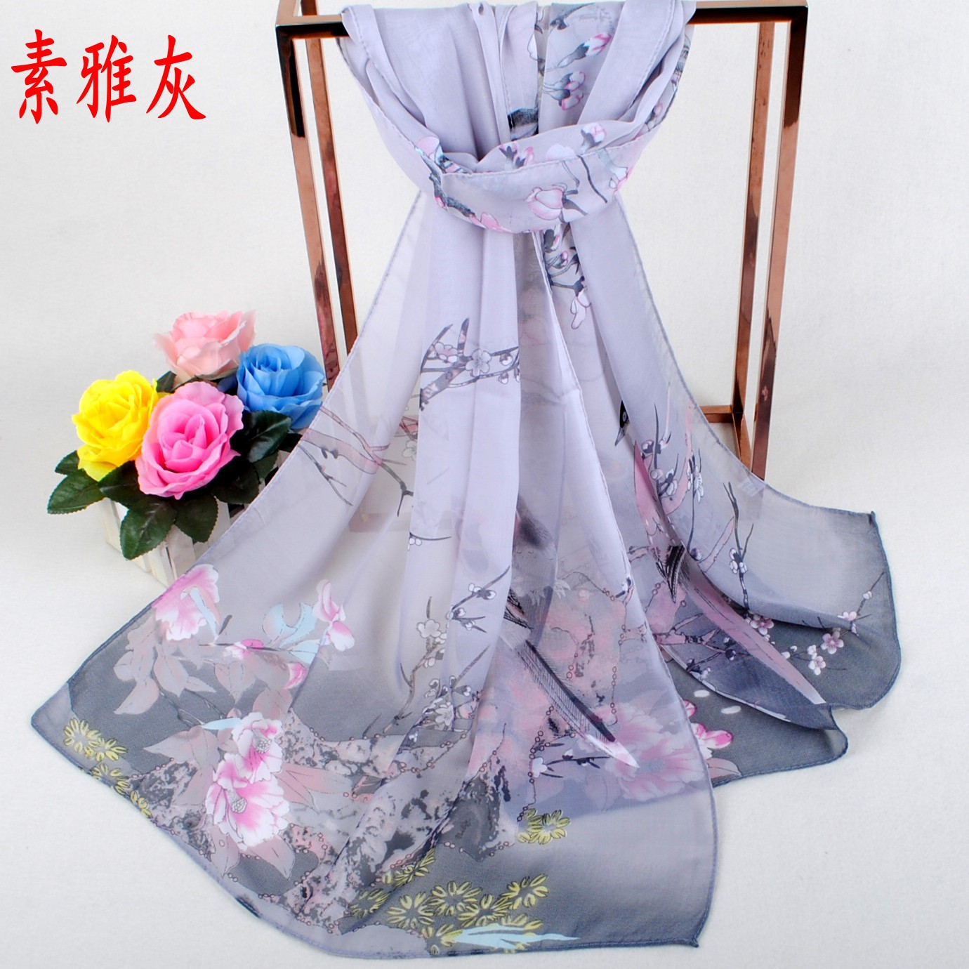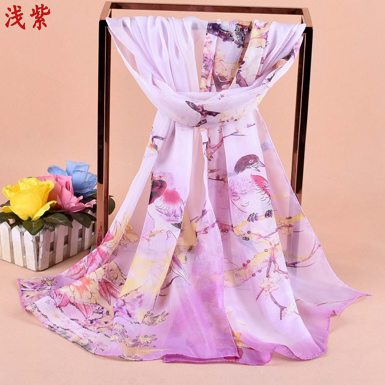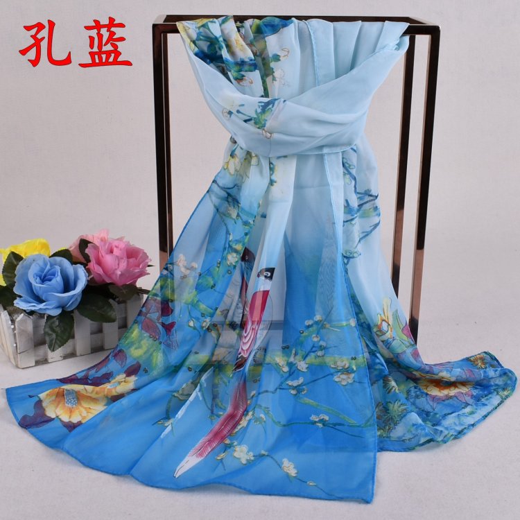 • 名称:  喜鹊报春雪纺丝巾