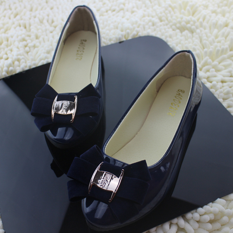 2026 한국판 패셔너블하고 달콤한 리본 장식의 페이턴트 가죽 편안한 여성 플랫 슈즈 대형 사이즈 42 수출용