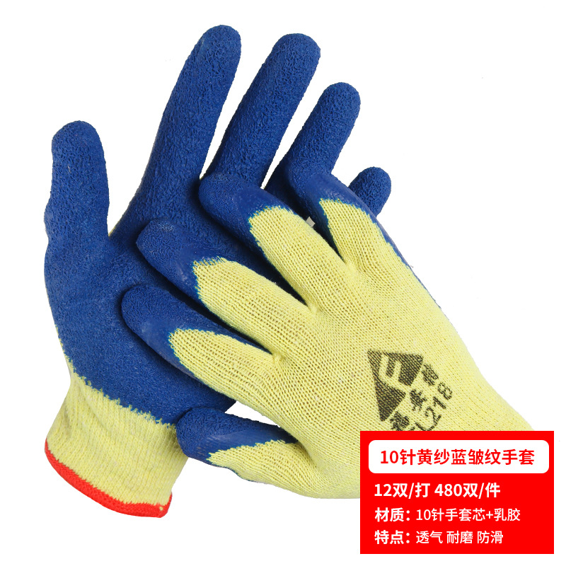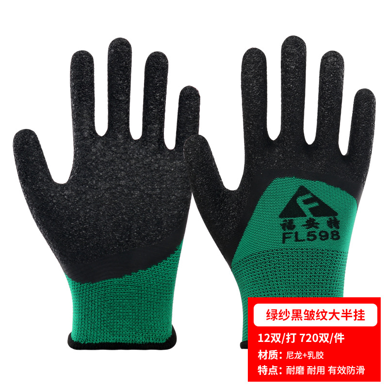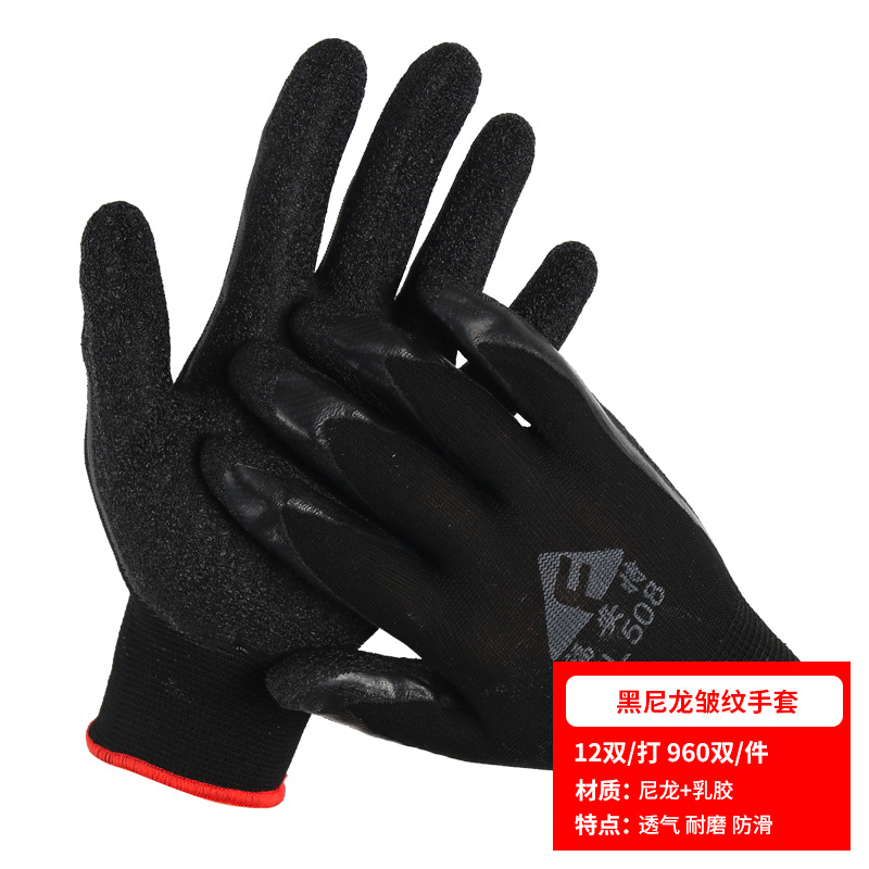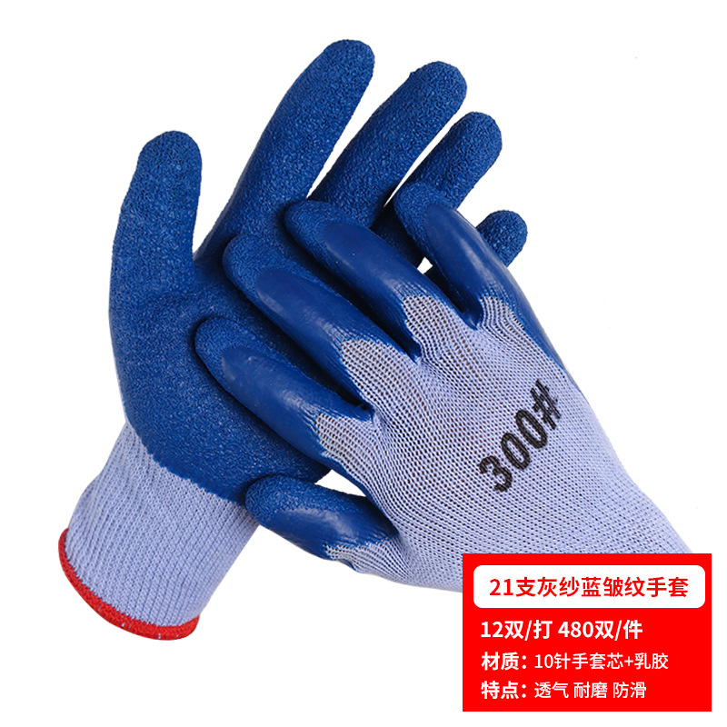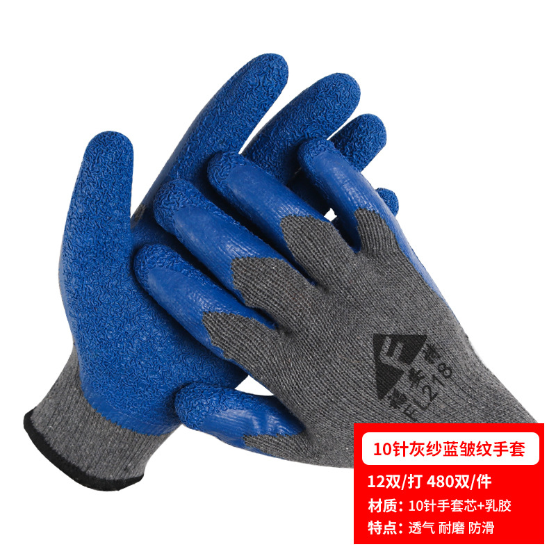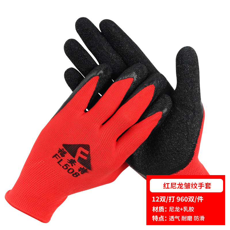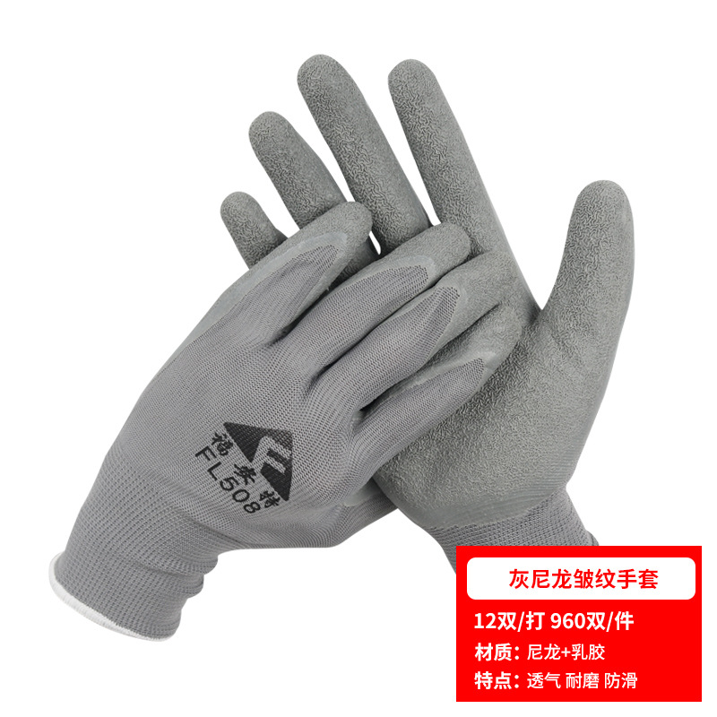 노동 장갑 라텍스 주름 내마모성 미끄럼 방지 교수형 접착제 통기성 침지 현장 작업 보호 도매 라인 주름 장갑스토어 가기