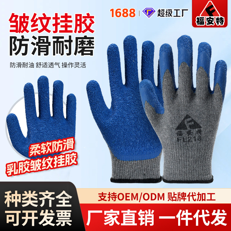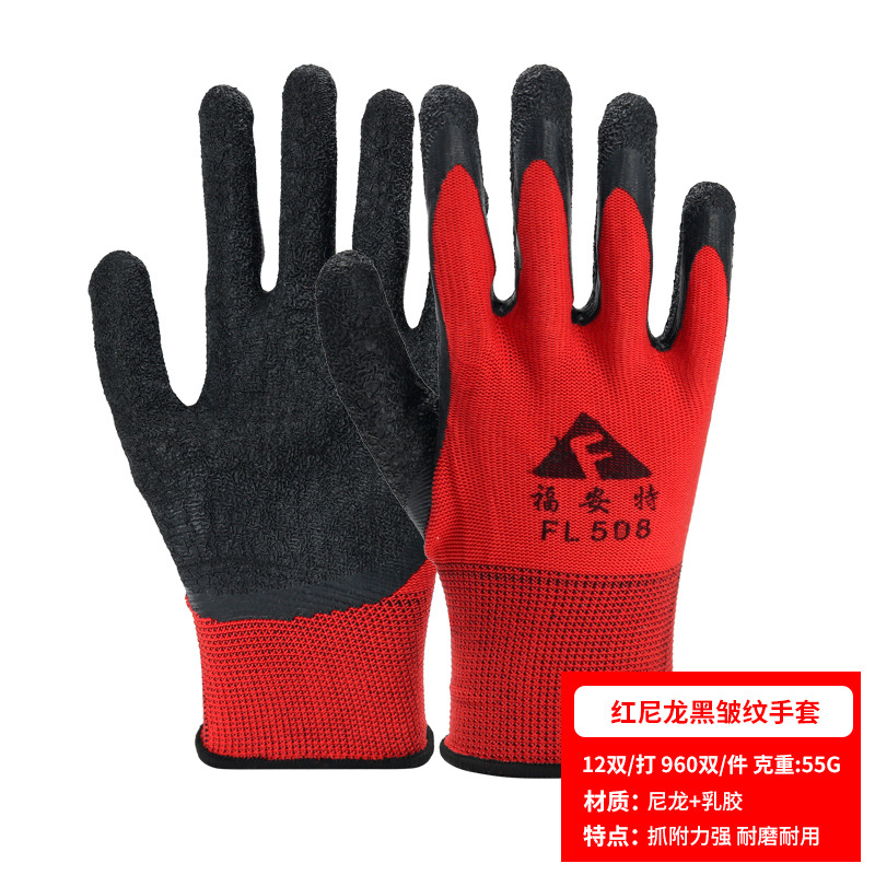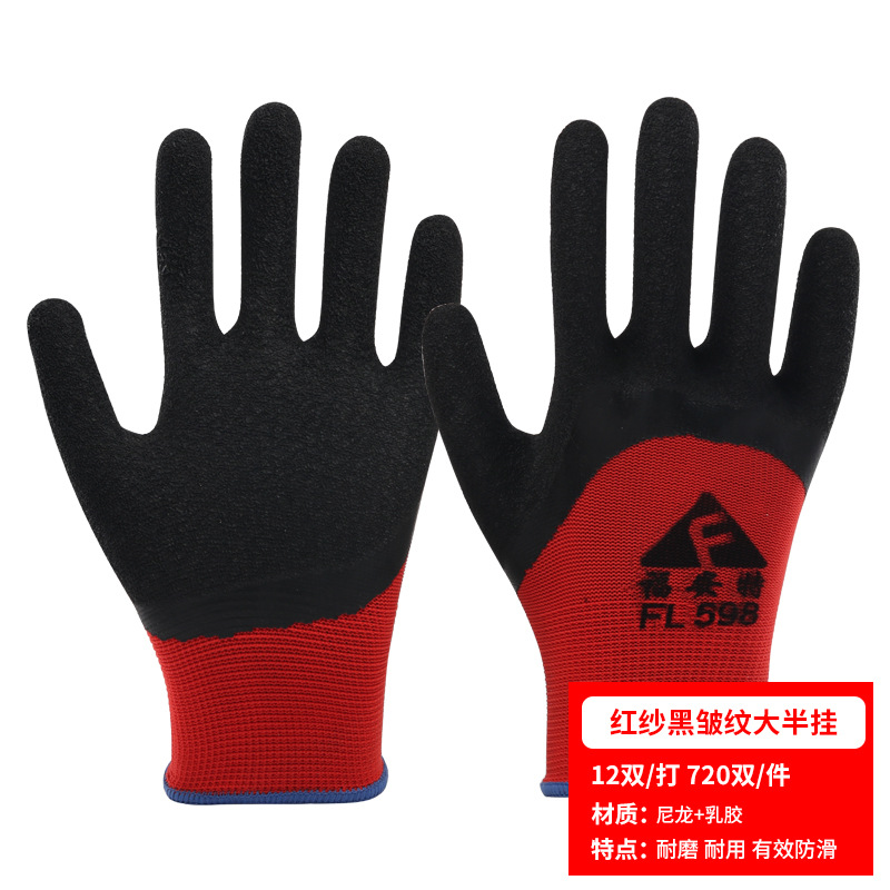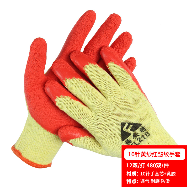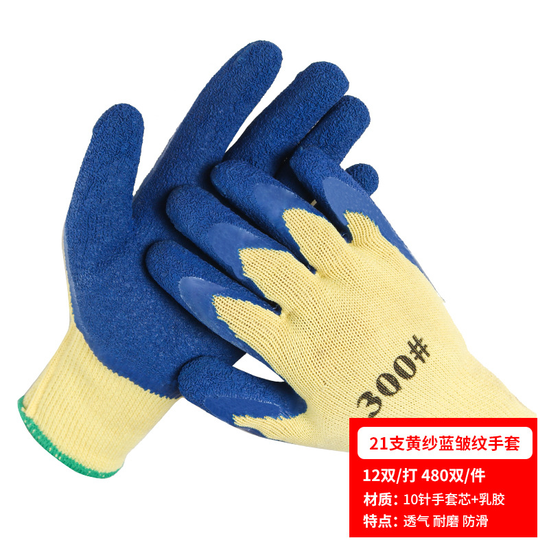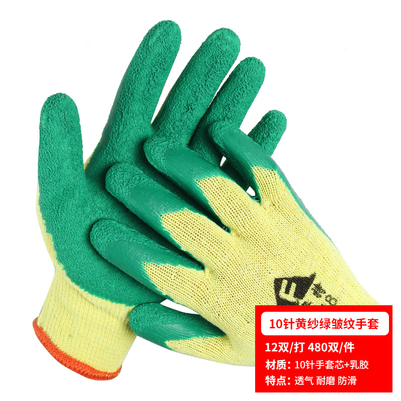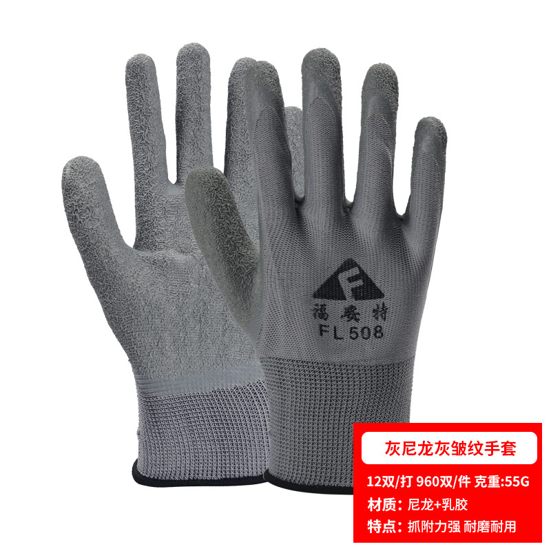 노동 장갑 라텍스 주름 내마모성 미끄럼 방지 교수형 접착제 통기성 침지 현장 작업 보호 도매 라인 주름 장갑스토어 가기