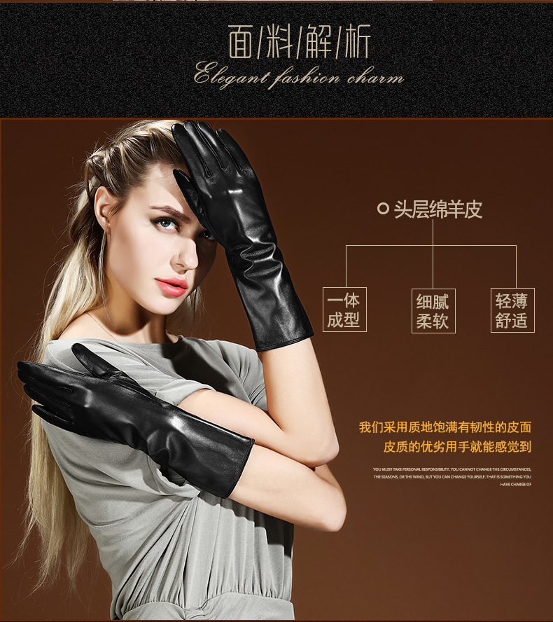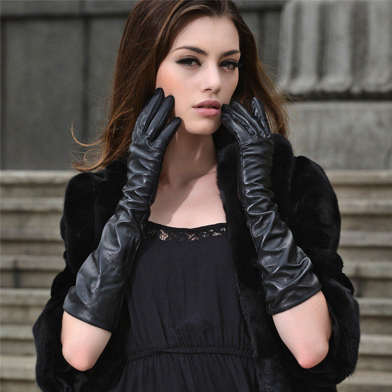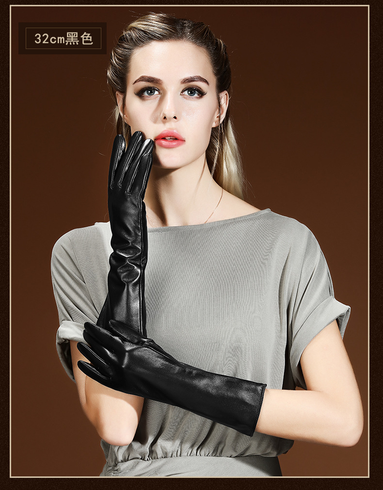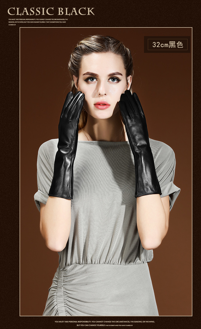 여성용 겨울 양가죽 장갑, 벨벳 안감으로 따뜻함 유지, 운전용 터치스크린 팔토시, 손 모양을 아름답게 만들어주는 한국 스타일 긴팔 팔토시